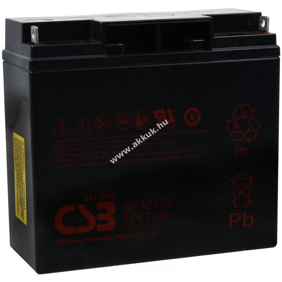 12V 17Ah Lead-Acid fekete 181mm x 76mm x 167mm 5600 gr. CSB 1 év jótállás (további részletek) 4062438568534