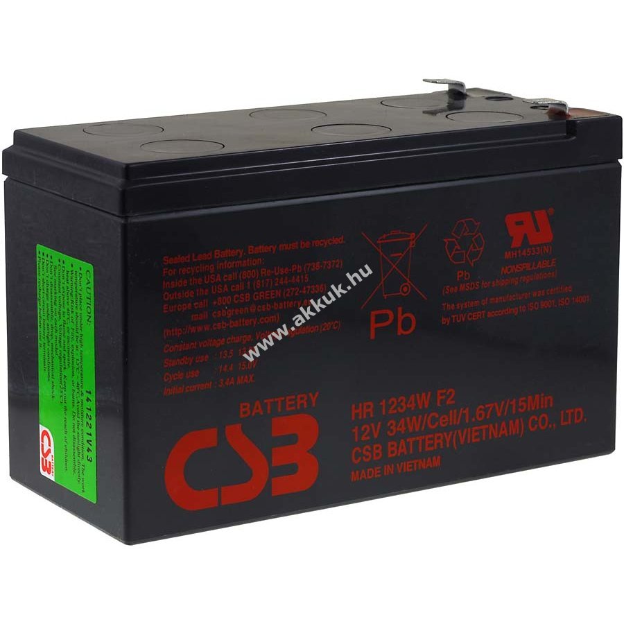 12V 9Ah SLA fekete 151mm x 94mm x 65mm 2540 gr. CSB 1 év jótállás (további részletek) 4062438116070
