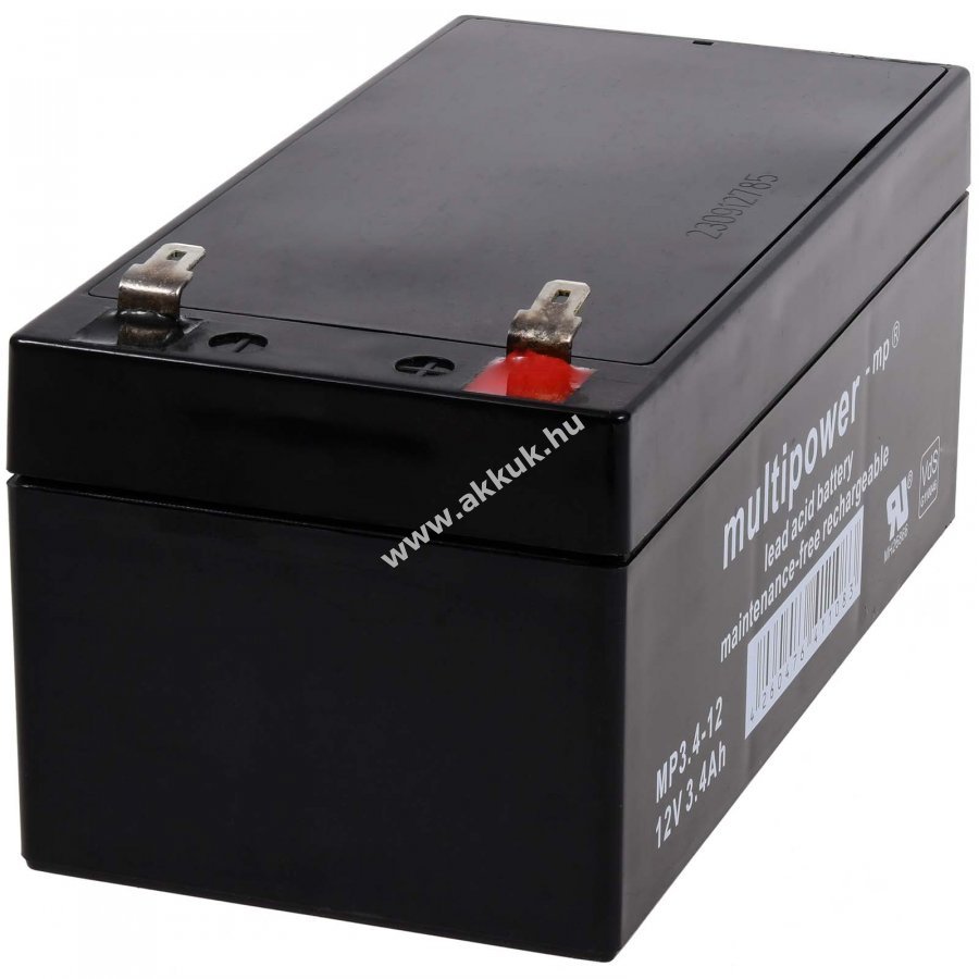 12V 3,4Ah/41Wh SLA fekete 134mm x 67mm x 66mm 1380 gr. MULTIPOWER 1 év jótállás (további részletek)