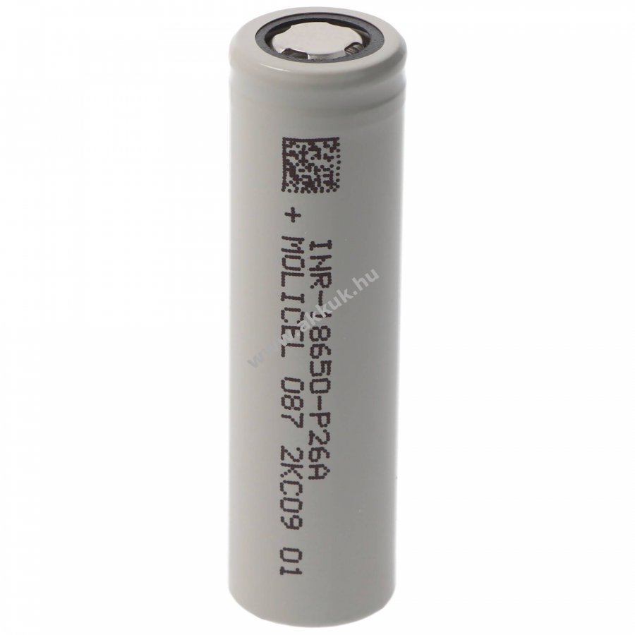 Molicel INR18650-P26A nagy áramerősségű 18650 Li-Ion akku, 2600mAh kapacitással és 35A folyamatos terhelhetőséggel flat top, védőáramkör nélküli cella.