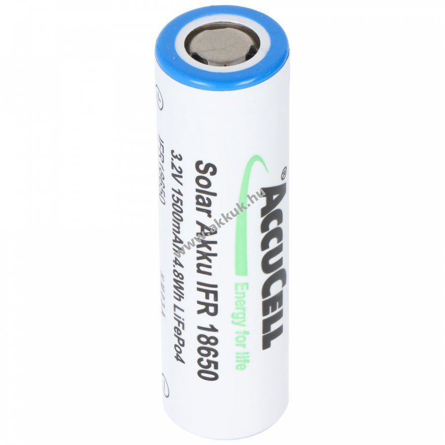 3.2V 1400mAh/4.5Wh LiFePO4 fehér 64,5mm x 18mm 41 gr. AccuCell Szavatosság (további részletek)