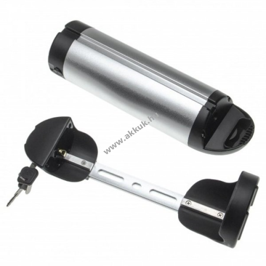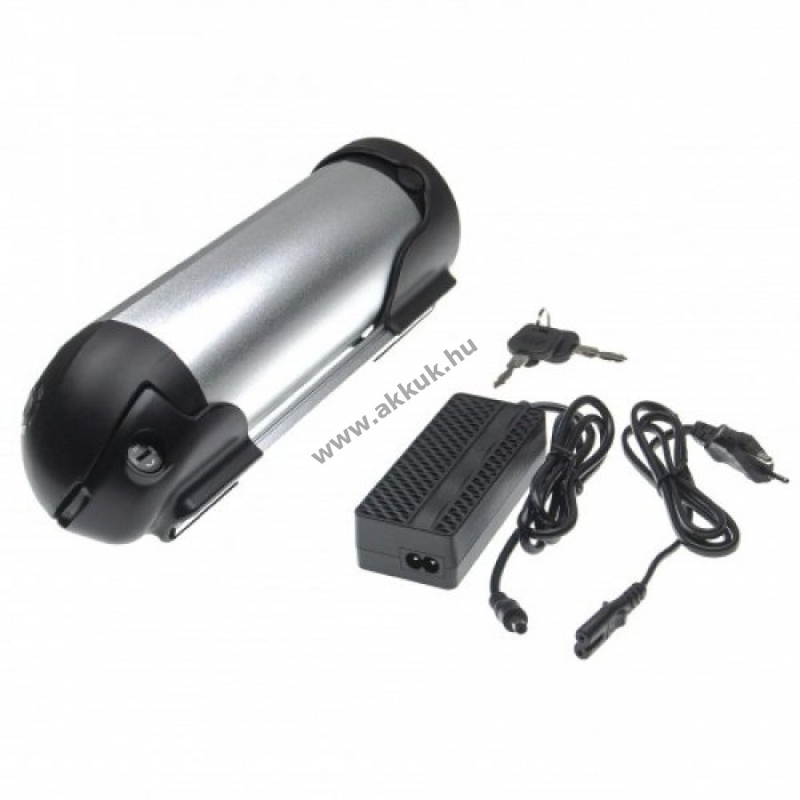 Szerelékkel, zárral és kulccsal együtt, Hálózati adapter az akkumulátor töltéséhez LED kijelző az akkumulátor töltöttségi állapotáról Az akkumulátort kábel nélkül szállítjuk, mivel a kábel már a kerékpárhoz vagy annak motorjához van csatlakoztatva és az akkumulátor a 4 pólusú kerek dugóval csatlakozik hozzá. Az akkumulátort a következőkben használják: Műszaki adatok: Technológia: Li-Ion; Nincs memóriahatás akár 1000 töltési ciklus Szín: ezüst Feszültség: 36V Kapacitás: 10Ah az e-bike akkumulátorainkhoz kizárólag kiváló minőségű Li-Ion 18650 típusú cellákat használunk. a következő modellekhez: 36V, 10AH palackos akkumulátor Kerékpármotorok 200W-tól 350W-ig