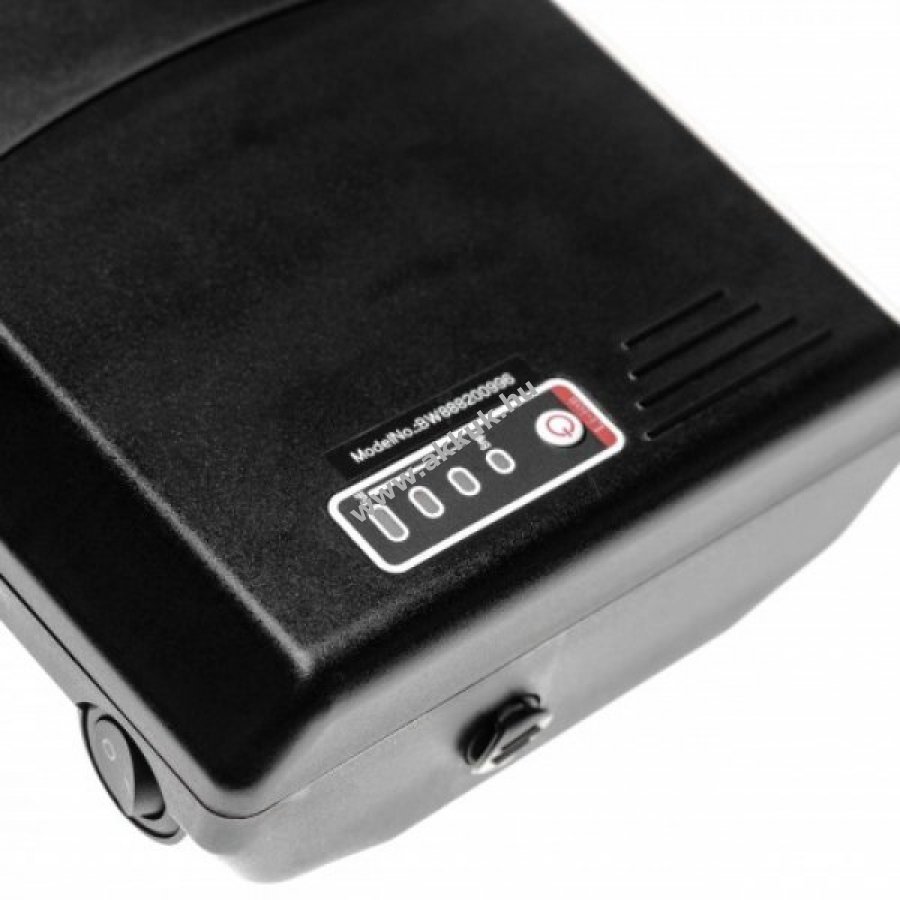 Az akkumulátor méretei (H x Sz x M): 32,5 x 14,6 x 6 cm Méretek az akkumulátor tartója (H x Sz x M): 5 x 14,6 x 7,35 cm A becsúsztatható rendszer külső méretei: (H x Sz x M): 24,3 x 14,6 x 8,3 cm Teljes méret (H x Sz x H): 39,4 x 14,6 x 8,3 cm Rögzítőegység a bepattintható rendszer alján, 4x M4 menettel A szálak távolsága a bepattintható rendszer * elejétől: 67,5 mm vagy 213,5 mm A menetek távolsága a bepattintható rendszer oldalszélétől: 37,5 mm Akkumulátor-tartó bemélyedéssel a kábelhez és a 2-tűs csatlakozóhoz a nyereg felé Kivágott méretek (Sz x M): 17,5 x 8,6 mm Akár 1000 töltési ciklus lehetséges Nincs memória hatása Akkumulátorkezelő rendszer Hőmérséklet és túlterhelés elleni védelem LED töltöttségi szintjelzővel Zárható, hogy az idegen emberek ne lopják el az akkumulátort, és hogy az akkumulátor biztonságosan üljön a bepattanó rendszerben 1-pólusú csatlakozóval a töltőhöz Gumi borítással a töltőaljzathoz töltő Anyag: műanyag Fekete szín Méretek (H x Sz x M): 12,2 x 6,5 x 3,9 cm Súly: 342 g Bemeneti feszültség: AC 100 - 240 V / 1,5A Kimeneti feszültség: DC 29,4 V / 2A Frekvencia: 50-60Hz Kábelhossz (a töltőtől az akkumulátorig): 143cm Kábelhossz (a töltőtől az aljzatig): 184cm A csatlakozás: Euro dugó B kapcsolat 1 tűs csatlakozó Polaritás a csatlakozón: mínusz külső, belül plusz Dugós változat: egyenes LED-es kijelzővel 4 kis gumi talp
