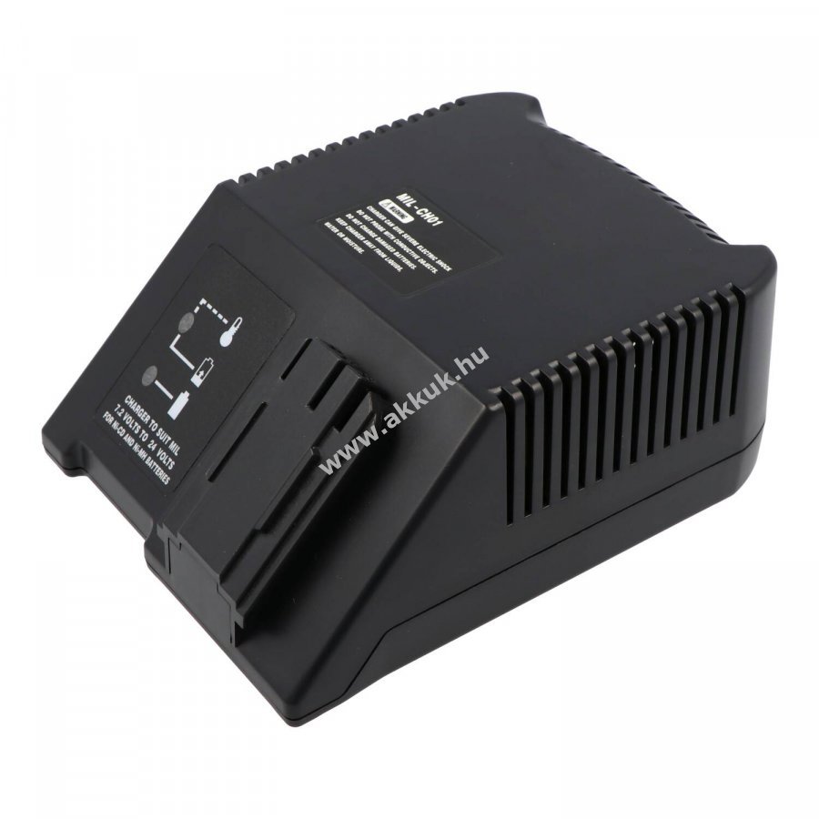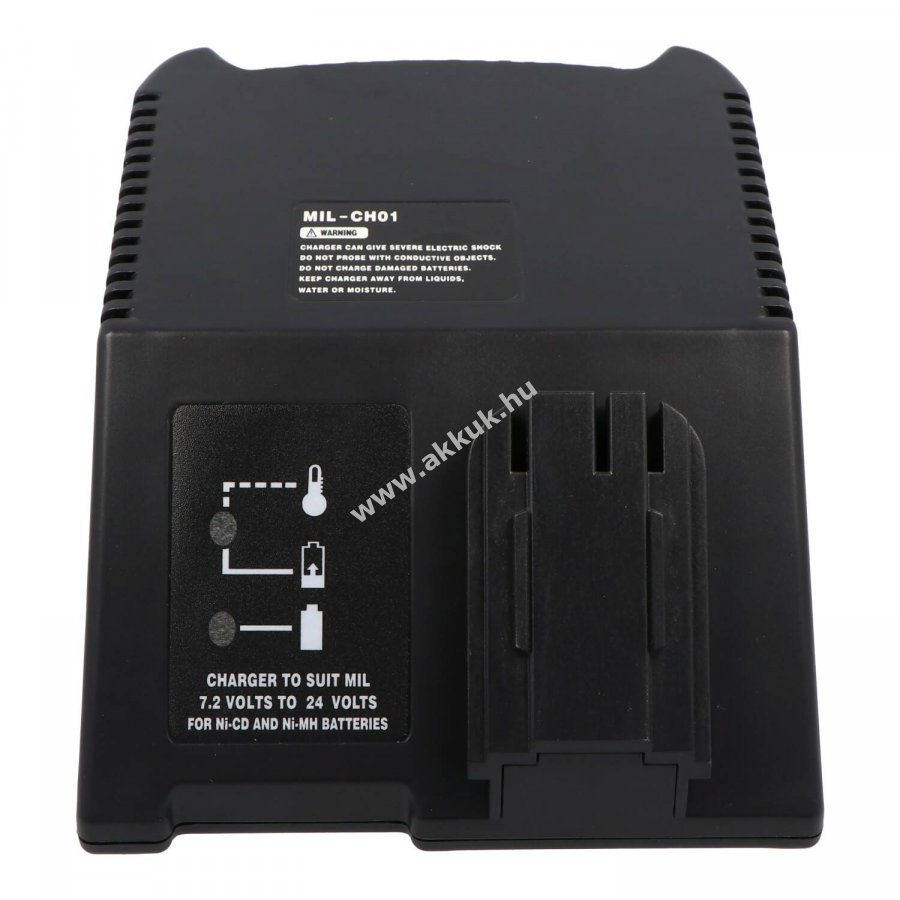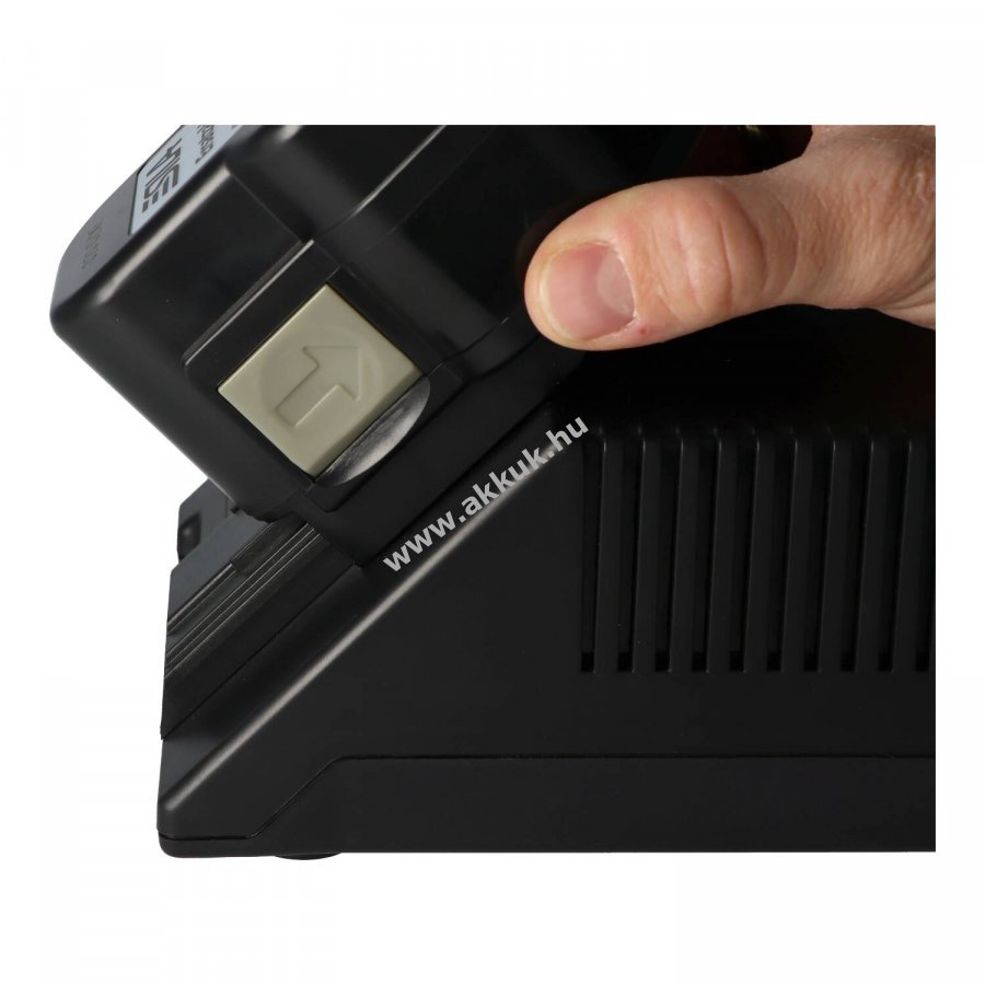 Univerzális (nem eredeti) gyors töltésre képes asztali Töltő NiCd és NiMH -a megnevezésben feltüntetett márka, modell, illetve típus azonos- szerszámgép akkumulátorokhoz 7,2V-tól 24V-ig Technikai adatok: - Bemeneti feszültség: 100-240V - Kimeneti feszültség: 7,2V-tól 24V-ig (automatikusan szabályozva) - Akkutípusok: NiCd és NiMH (Li-Ion-akkuhoz nem jó!) - Töltőáram: 1,5A - 3 fázisú töltési mód (elő-, folyamatos-, és csepp töltés) Töltési idő példák: NiCd 2Ah = kb. 80perc NiMH 3Ah = kb. 120perc Biztonsági jellemzők: - túlmelegedés elleni védelem, - rövidzárlat védelem, - automatikus töltés lekapcsolás, - hibás akkuk felismerése. Csomag tartalma: - asztali Töltő, - tápegység, - használati útmutató