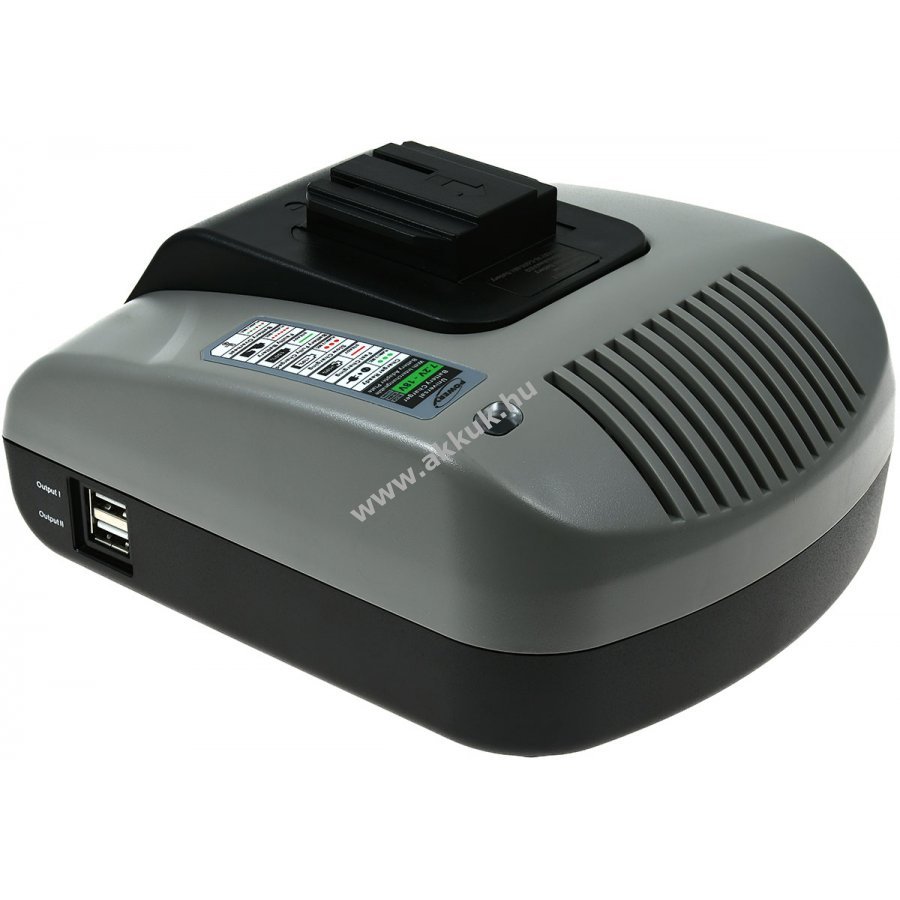 Gyorstöltő asztali töltő Milwaukee 18V Li.Ion szerszámakkumulátorokhoz Műszaki adatok: Bemeneti feszültség: 100-240V Kimeneti feszültség: 12V (automatikusan szabályozott) + 2x USB 5V (kimenetenként max. 2,1A) Töltőáram: 1A - 3A Elemtípusok : NiCd, NiMH, Li- Ion háromfázisú töltés: 1. Előtöltés - 2. Állandó áramú gyorstöltés - 3. Csepptöltés Töltési végállás kapcsoló: - Delta U nem eredeti töltő Biztonsági jellemzők: Túlmelegedés elleni védelem Rövidzárlat védelem Fordított polaritás védelem automatikus. Töltés vég kikapcsolása Hibás akkumulátorok észlelése Szállítási terjedelem: asztali töltő, tápkábel, használati útmutató Figyelem ez egy gépi fordítás, amennyiben hibát talál kérjük jelezze felénk.