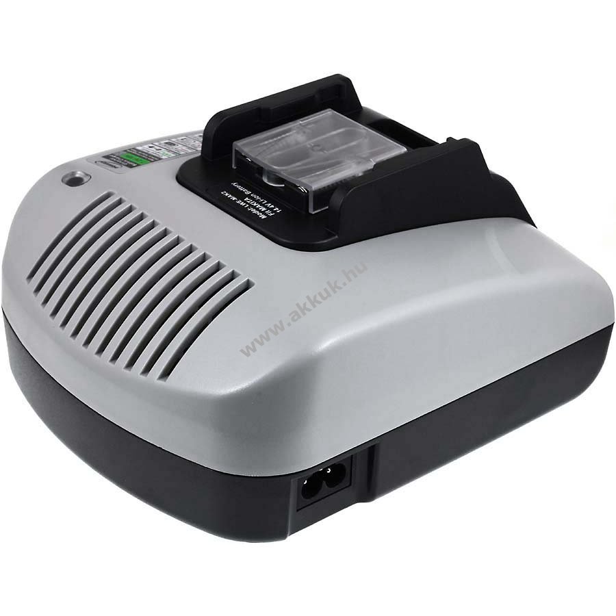 Gyorstöltésre képes asztali Töltő 14,4V feszültségű szerszámgép akkumulátorokhoz Technikai adatok: Bemeneti feszültség: 100-240Volt Kimeneti feszültség: 14,4V (automata szabályozás) + 2db USB 5V kimenet (max. 2,1A kimenetenként) Töltőáram: 1A - 3A között Akkutípusok, amiket tölt: Li-Ion Három fázisú töltés: 1.Elotöltés- 2. Folyamatos gyors áram töltés- 3.Csepegteto töltés Töltésvége lekapacsolás: -Delta U nem eredeti készülék Biztonsági jellemzők: Túlmelegedés elleni védelem, Rövidzárlat elleni védelem Téves polaritás elleni védelem automatikus töltés vége lekapcsolás Hibás akkumulátorok felismerése A csomag tartalma: Asztali Töltő Hálózati kábel USB-Micro USB kábel Használati útmutató