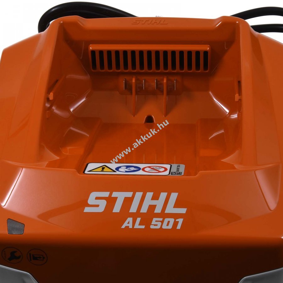 AL-500 gyorstöltő , AK, AP, AR Minden STIHL AK akkumulátor, STIHL AP akkumulátor és STIHL AR akkumulátor gyorsan újratölthető a STIHL AL akkumulátoros gyorstöltőkkel. Az aktív akkumulátorhűtés védi az akkumulátorokat a töltési folyamat során. Az üzemállapot-kijelző LED-en keresztül mutatja, hogy mennyit haladt a töltési folyamat. A könnyű és kompakt STIHL AL akkumulátoros gyorstöltők névleges feszültsége 36 V, és megfelelő töltési árammal működnek a különösen gyors töltési idők érdekében. A praktikus kábeltárolóval ellátott STIHL gyorstöltőket a falra is rögzítheti. Műszaki adatok Súly: 1,3 kg Töltési idő AP 100: 35 perc Töltési idő AP 200: 35 perc Töltési idő AP 300: 35 perc Töltési idő AR 2000: 130 perc Töltési idő AR 3000: 160 perc Töltőáram: 12 A Hálózati feszültség: 220 -240/50 V /Hz Akkumulátor feszültség: 36 V Figyelem ez egy gépi fordítás, amennyiben hibát talál kérjük jelezze felénk.