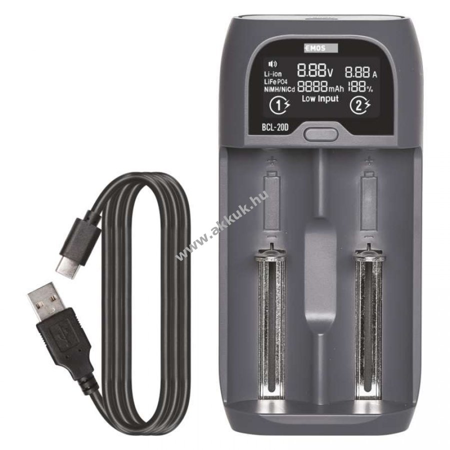 tölthető cellák mérete10440 – 26650, AAA, AA, C, SC egyidejűleg töltött akkumulátorok száma1 vagy 2 töltési csatornák száma2 alkáli elemek érzékeléseigen töltési áram C1 000 mA töltési áram AAA1 000 mA töltési áram AA1 000 mA töltési idő AAA 1 000 mAh1:15 töltési idő AA 2 700 mAh3:00 töltési idő C 3 500 mAh4:00 táplálásUSB 5 V/2 A a tölthető akkumulátorok típusaLi-ion, LiFePO4, NiMH sérült elemek érzékelése fordított polaritás elleni védelem USB kábel, a csomag a töltőt ne mtartalmazza
