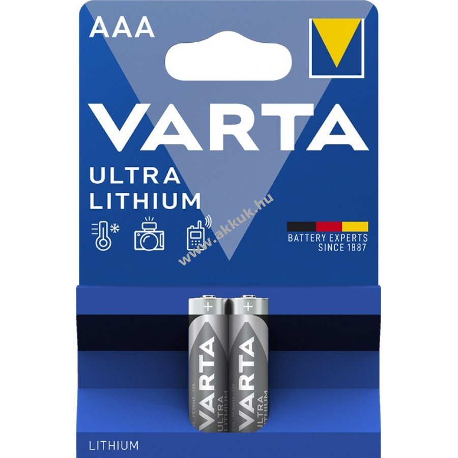 Varta Lithium FR03/AAA (Micro) (6103) 2 db buborékfólia összecsukható buborékfólia - 1,5 V lítium akkumulátor maximális teljesítménnyel és tartóssággal megfelel a legmagasabb követelményeknek, tökéletes megoldás energiaigényes digitális fényképezőgépekhez, GPS készülékekhez, füstérzékelőkhöz stb. extrém körülmények között -40 és +60 °C között rendkívül megbízható, ideális sport/kültéri használatra, mivel akár 38%-kal könnyebb, mint az alkáli elemek Figyelem ez egy gépi fordítás, amennyiben hibát talál kérjük jelezze felénk.