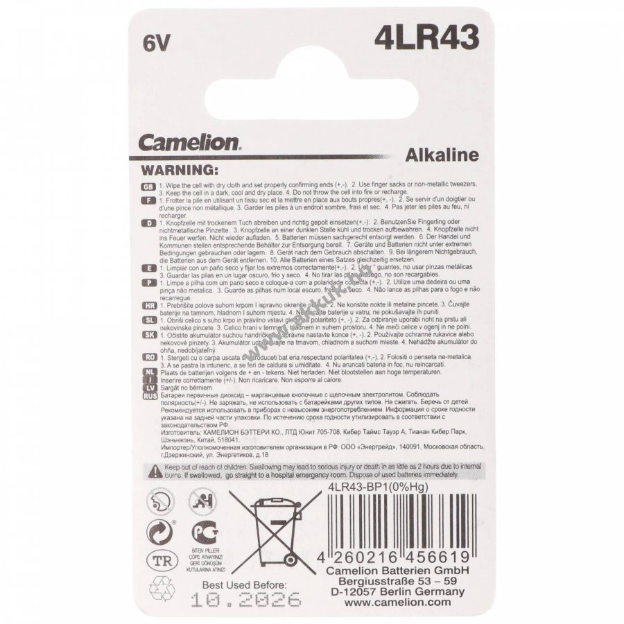 6V 80mAh/0.5Wh Alkali-Mangan ezüst 12.7mm x 20.5mm 8 gr. Camelion Szavatosság (további részletek)
