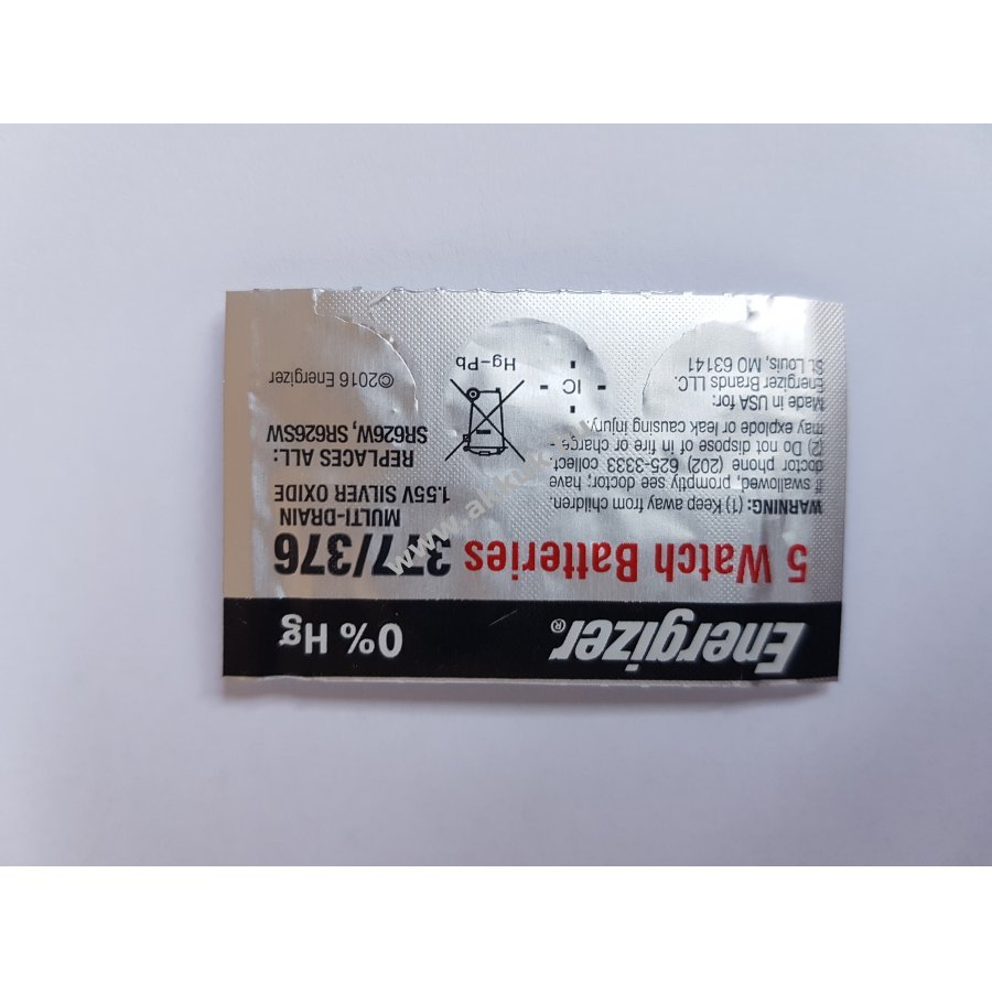 Energizer óra gombelem 377 376 SR626SW Varta V377 | 565 Bulova 606 Citizen 280-39 Duracell D377 GP Sylva Cell 377 Panasonic SR626SW Maxell SR626SW Ray-o-vac 377 Renata 377 Seiko SB-AW Sony SR626SW Toshiba SR626SW Ucar 377 IEC SR66 377 (37) B-377L Timex BA