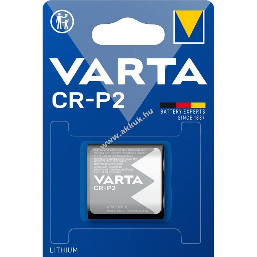 Varta CR P2 lítium fotóelem magas kapacitással és gyors nagy teljesítmény leadással professzionális fényképezőgépekhez és mérőműszerekhez.