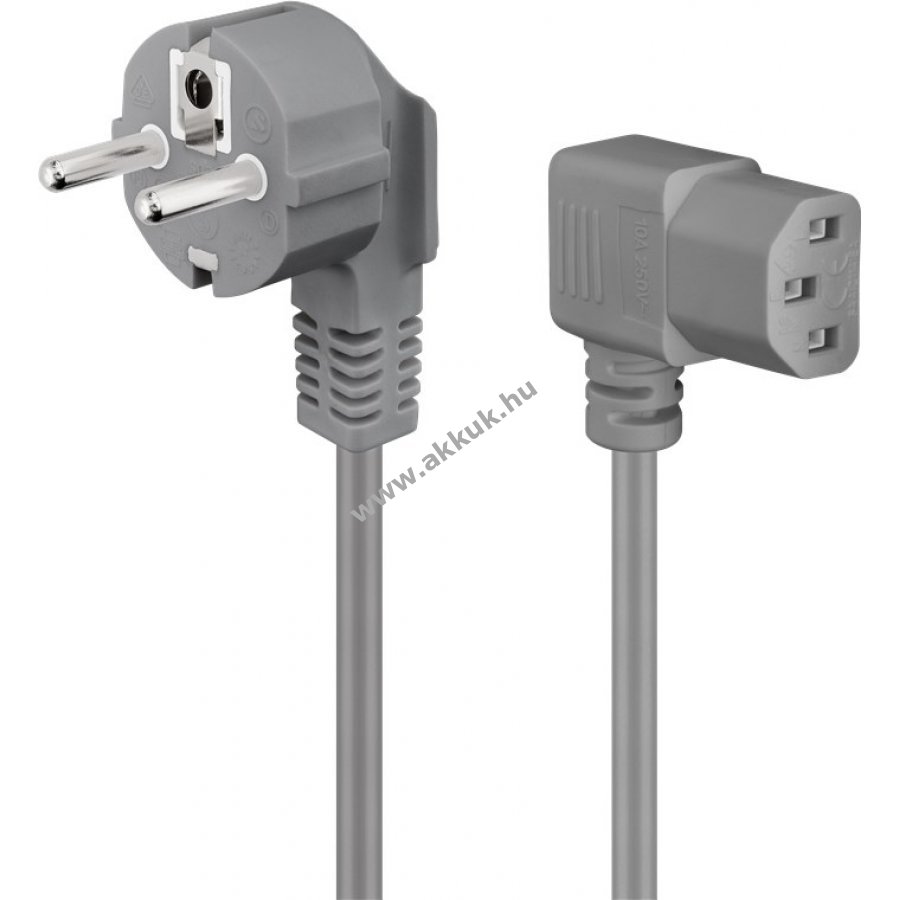 Goobay IEC csatlakozókábel, mindkét oldalán szögben, 2 m-es szürke műanyag tasakban - védőérintkezős dugasz (F CEE 7/7 típus)> C13 eszközaljzat (IEC-csatlakozó), univerzálisan alkalmazható IEC-eszközökhöz, mint pl. PC-monitor kivetítő és még sok más