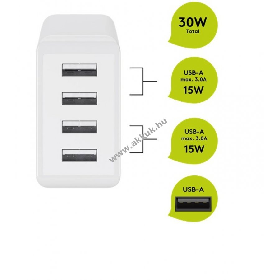 akár 4 okostelefonot, kamerát és más USB-eszközt tölthet egyszerre lehetővé teszi a gyors töltést közvetlenül a kimeneten intelligens eszköz felismerése az ID chip segítségével 100 V - 240 V azt jelenti, hogy külföldön is felhasználható