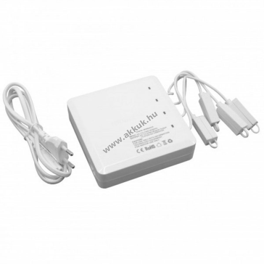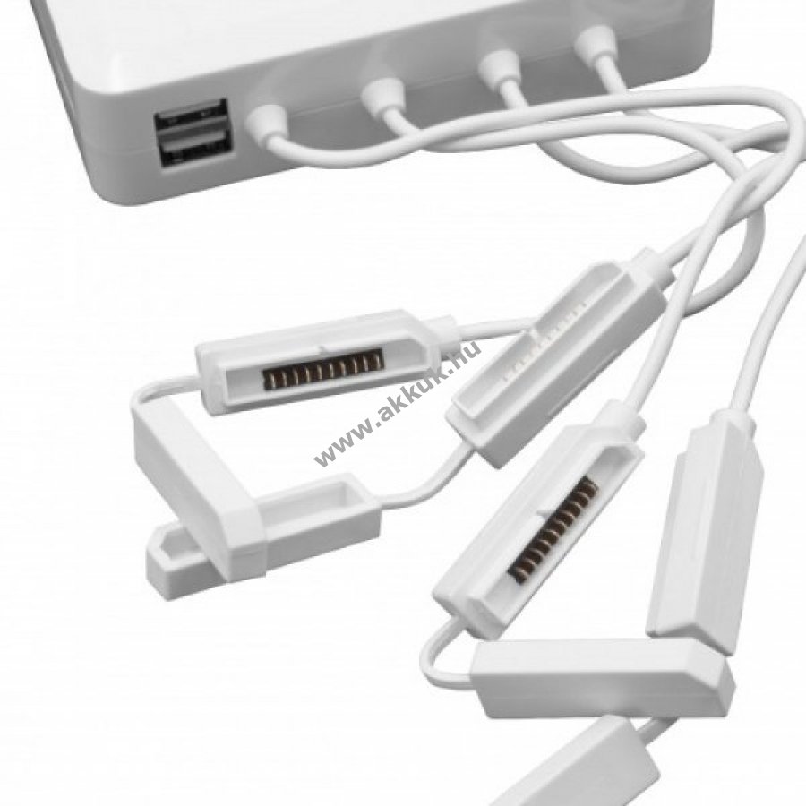 Interfészek száma: 4 akkumulátor csatlakozás, 2 USB port Töltési idő: 60 - 70 perc Ezzel a töltővel egyszerre négy DJI Mavic Air akkumulátort, a távirányítót és egy okostelefonot tölthet. A távirányító és az okostelefon töltése a 2 USB porton keresztül történik 4 LED töltésjelzővel piros: töltés zöld: teljesen feltöltve Túlfeszültség, túláram, túlmelegedés és túlterhelés elleni védelemmel Kábelhossz a töltőtől az akkumulátorig: 14,5cm