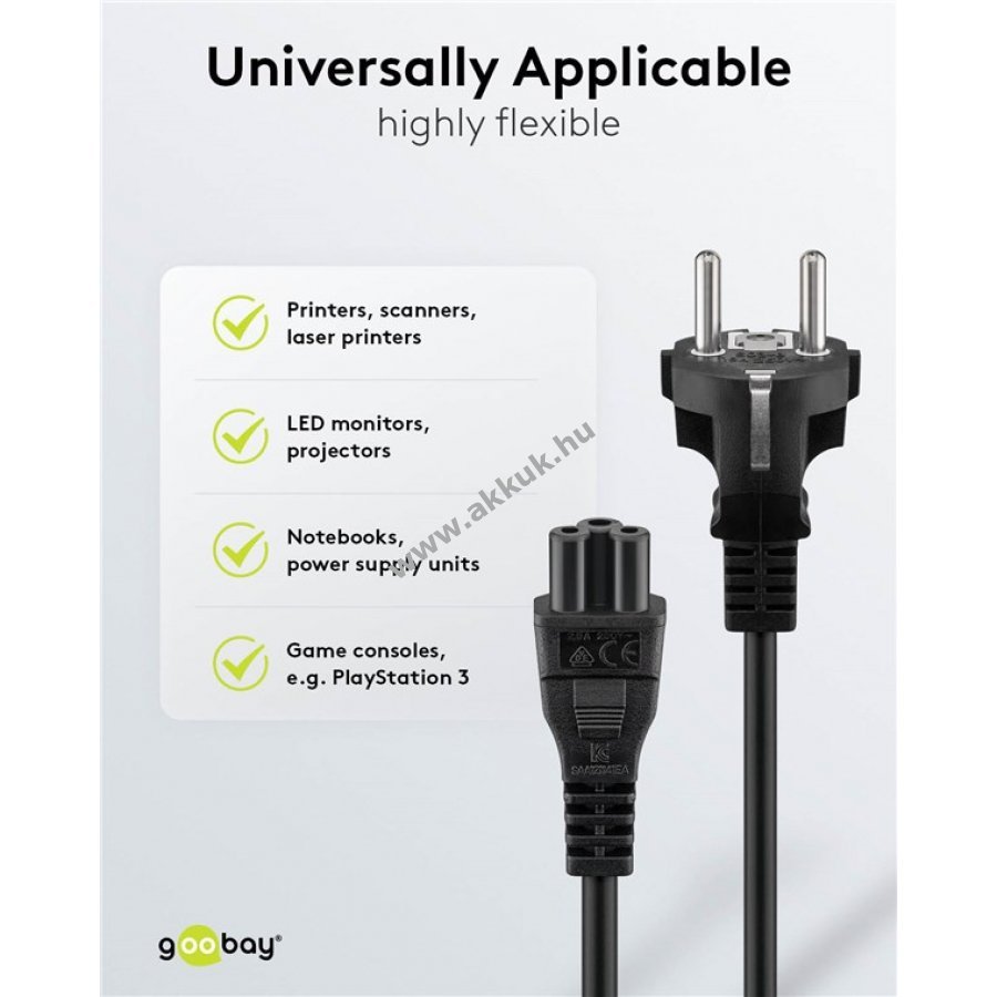 Goobay tápkábel (védőérintkező) 1,8 m védőérintkezős dugasz (F CEE 7/7 típus)> C5 eszközcsatlakozó IEC-60320-C5, más néven lóhere vagy Mickey Mouse dugó