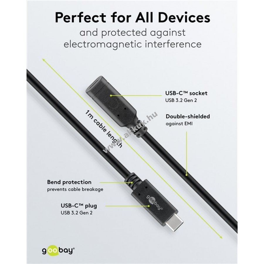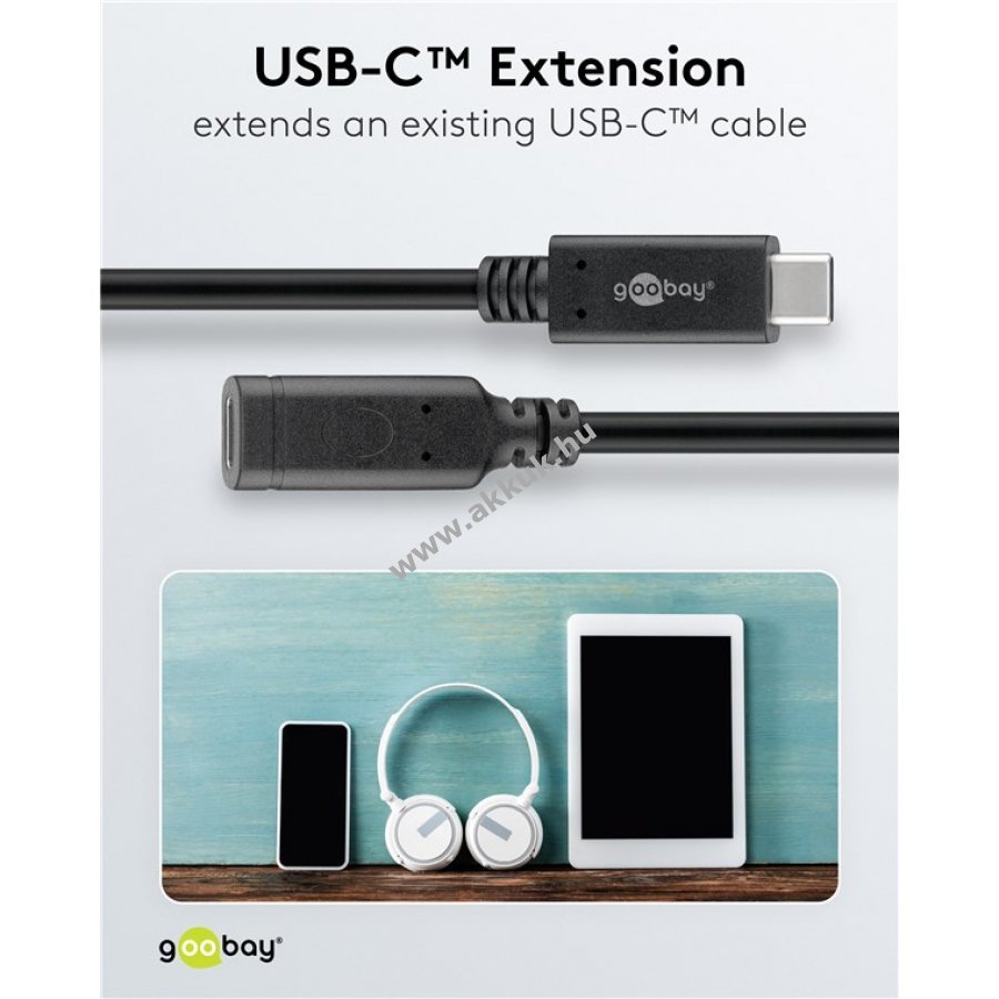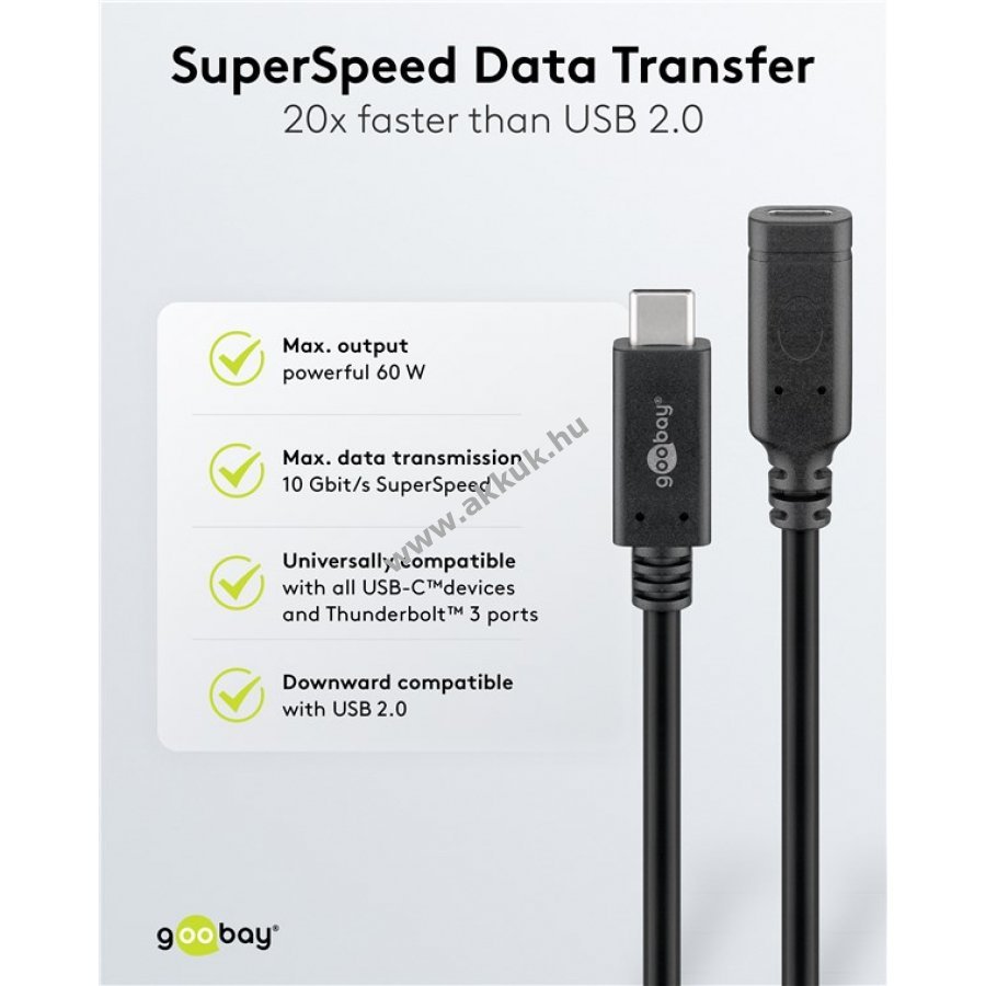 Goobay USB-C hosszabbító kábel 1m 60W 3A USB 3.2 10Gbit/s fekete