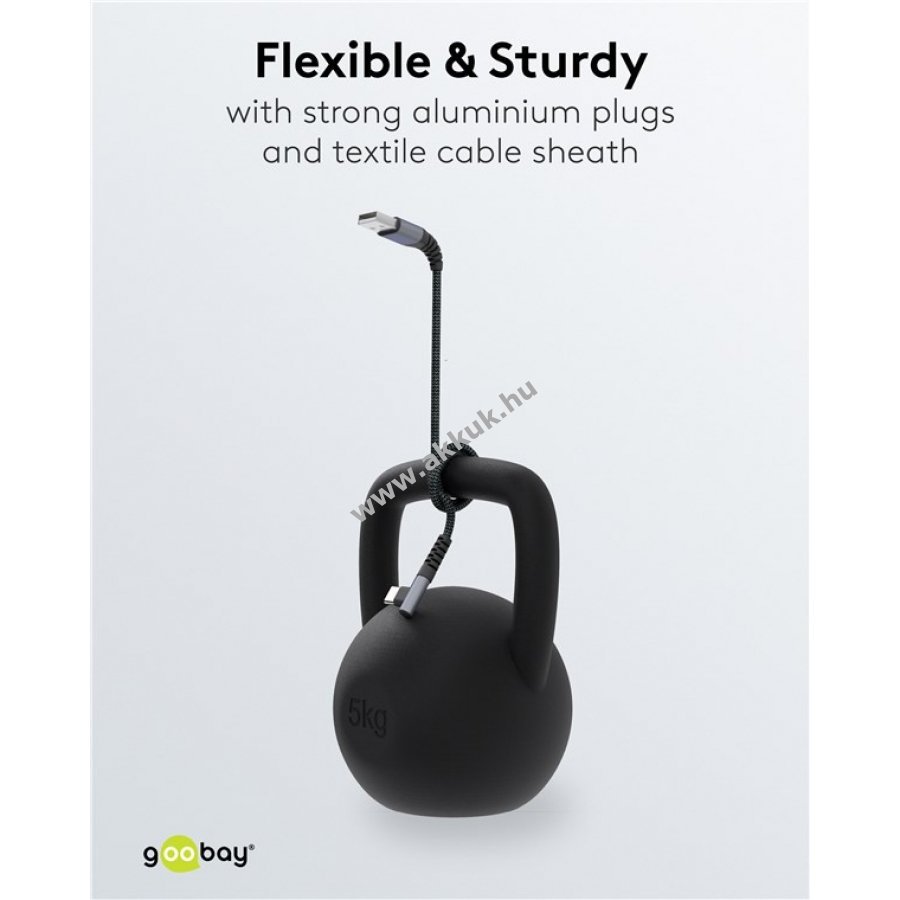 USB-C kompatibilis az Apple iPhone 15 sorozattal és több iPad modellel. 15 W maximális töltési teljesítmény USB 2.0 szabvány szerint. A 90 fokos csatlakozó szorosan illeszkedik az eszközhöz, csökkentve a kábel törését különösen használat közben. A szimmetrikus USB-C csatlakozó bármelyik irányban csatlakoztatható. A megerősített fém csatlakozók 10 000 hajlítási ciklusra tervezettek, így rendkívül tartósak. A fonott textilborítás kellemes tapintású és kíméli az érzékeny felületeket. Alkalmas USB-C eszközök, például Playstation 5 kontroller, Bluetooth hangszórók, tabletek és powerbankok töltésére és működtetésére. A 2 m hosszú kábel ideális nagyobb távolságok áthidalására munkahelyen vagy otthoni irodában.