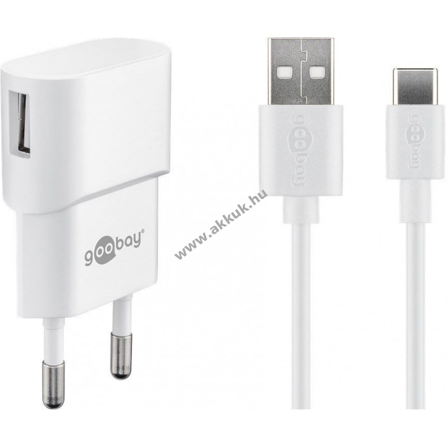 Hálózati töltő 1A és USB C típusú kábel 1m fehér okostelefonok, kamerák és más USB C-s eszközök töltéséhez 100 V és 240 V közötti feszültséggel külföldön is használható