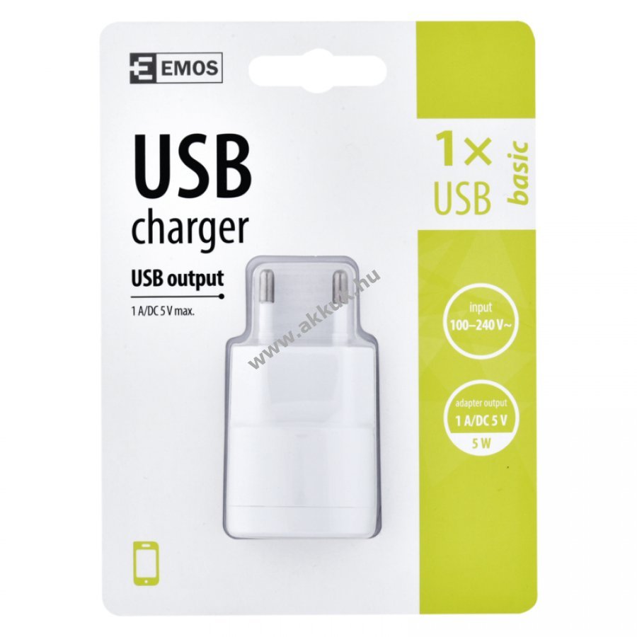 5V 1A fehér 47mm x 36mm x 18 mm 23 gr. EMOS Szavatosság (további részletek) 8592920038932