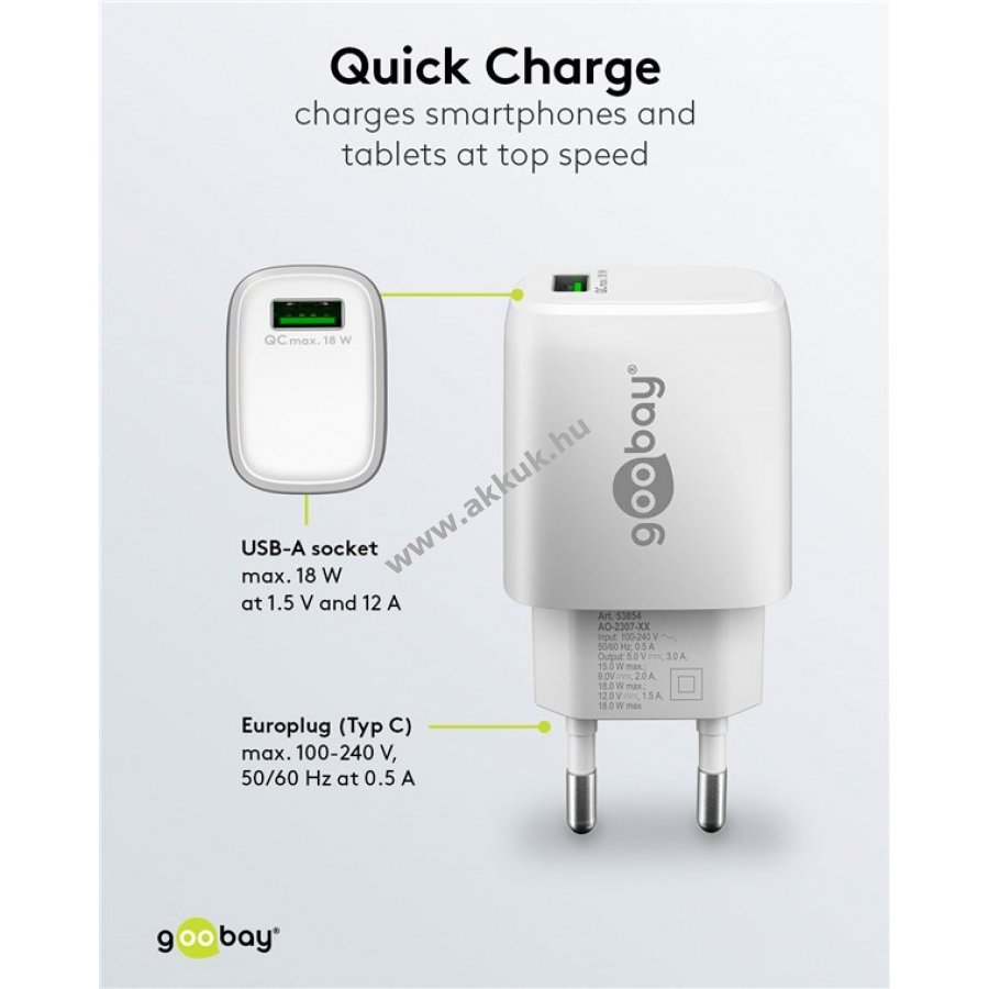 A töltő akár 4-szer gyorsabb töltést tesz lehetővé a Quick Charge 3.0 technológiának köszönhetően.