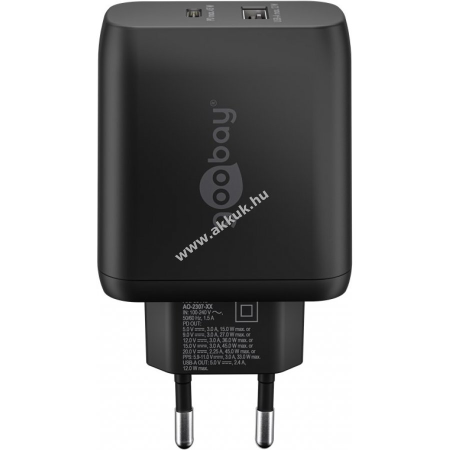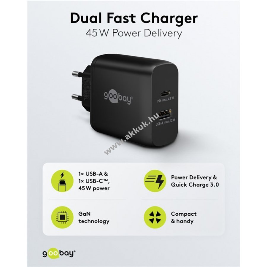 Kompakt és könnyű hálózati töltő akár 45 W teljesítménnyel gyors és megbízható töltést biztosít notebookokhoz és egyéb eszközökhöz