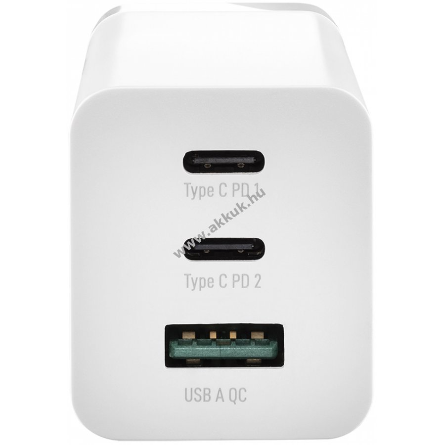 Teljes kimeneti teljesítmény: 65W A legújabb GaN technológia Technológiai trend: Power Delivery és Quick Charge a gyors és intelligens töltéshez 2db USB C típusú PD port: 5V/3A, 9V/3A, 12V/3A, 15V/3A, 20V/3.25A (65W max.) 1db USB A QC port: 5V/3A, 9V/3A, 12V/2.5A, 20V/1.5A (30W max.) Akár 3 készülék egyidejű töltése A nagy kimeneti teljesítménynek köszönhetően laptopok is tölthetők. Szuper könnyű, nagyon praktikus és kompakt méret