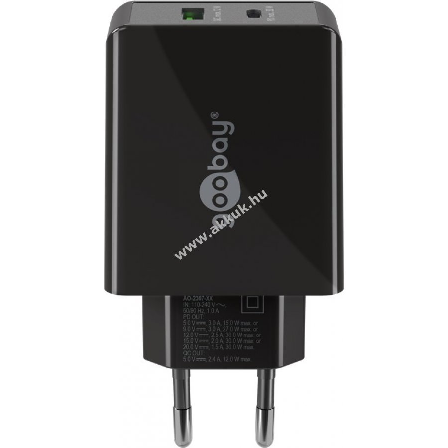 a Power Delivery funkcióval akár 4-szer gyorsabban tölt, mint a hagyományos töltők (0 %-ról 50 %-ra 30 perc alatt). A gyorstöltő kompatibilis az olyan okostelefonokkal, mint az Apple, Samsung, Xiaomi, LG, Huawei, valamint a táblagépekkel, mint az Apple iPad és a külső akkumulátorokkal. Az USB-C töltőport integrált védelmi elektronikája megvédi a csatlakoztatott eszközöket a túláram, a túltöltés és a túlmelegedés ellen. Kompakt kialakításának köszönhetően az USB-C töltő bármilyen táskában elfér, és ideális útitárs. A 100-240 V-os bemeneti feszültségtartománynak köszönhetően a Goobay USB-C hálózati adapter külföldön is használható. A Goobay USB-C töltő 1db USB-A porttal és 1db USB-C porttal rendelkezik.
