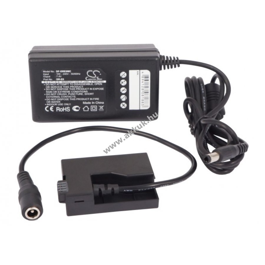 Folyamatos áramellátás adapter Canon EOS 600D-hez tápegységgel, felépítésében megegyezik az ACK-E8-cal. Leírás: - dumy akkumulátor - Tápegység - Kimeneti feszültség: 7,4V - Folyamatos áramellátás - A tápegységgel (felépítésében megegyezik az ACK-E8-cal) összekötve a kamerával/a fényképezőgéppel akkumulátor nélkül is üzemeltethető.