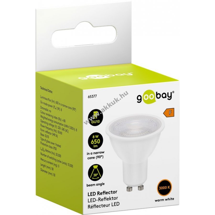 LED spot 38° sugárzási szöggel és GU10 foglalattal melegfehér 3000K fényű mint a hagyományos izzó alkalmas izzók vagy halogén lámpák helyettesítésére beépített spotok mennyezeti lámpák és beépített reflektorok esetén természetes színvisszaadással 80 Ra alacsony hőtermelés azonnali teljes fényerő indítás matt kivitel rendkívül hosszú élettartam