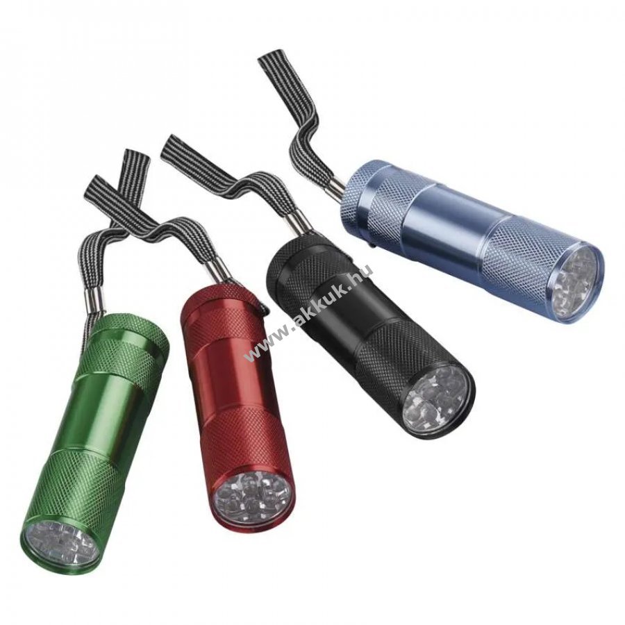 LED zseblámpa 9 LED-es Tápellátás: 3db AAA 1,5V elem (mely nem része a csomagnak) A mellékelt fotó csak illusztráció! További tulajdonságok: -világítási távolság: 22m -világítási idő: 30 óra -maximális fényáram: 50lm -ütésállóság: 1m -anyaga: alumínium (Al) -nem tölthető -a lámpához elem tartozik