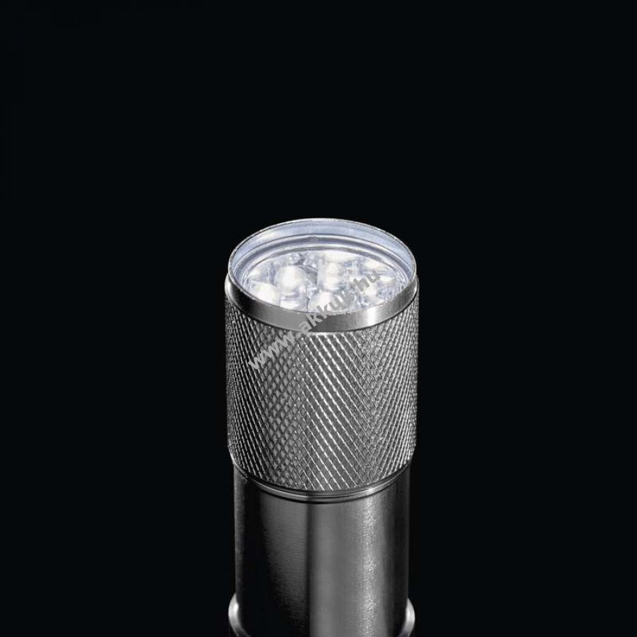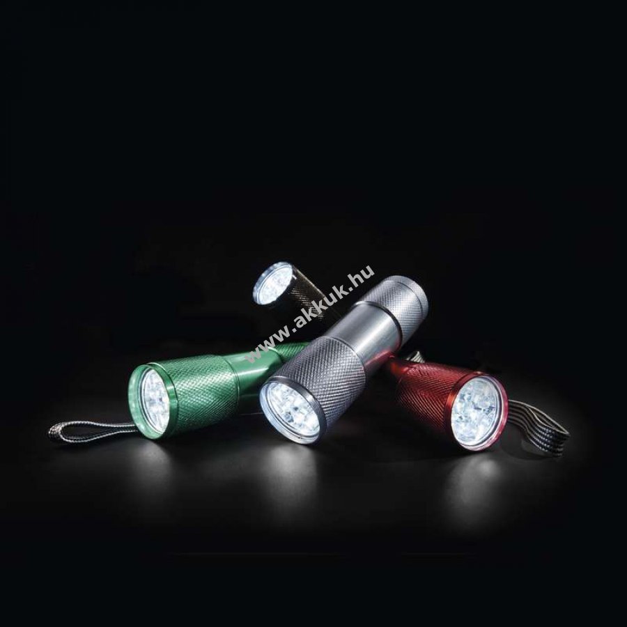 LED zseblámpa 9 LED-es Tápellátás: 3db AAA 1,5V elem (mely nem része a csomagnak) A mellékelt fotó csak illusztráció! További tulajdonságok: -világítási távolság: 22m -világítási idő: 30 óra -maximális fényáram: 50lm -ütésállóság: 1m -anyaga: alumínium (Al) -nem tölthető -a lámpához elem tartozik