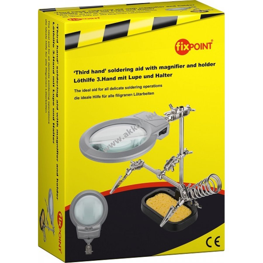 Forrasztó állvány nagyítóval A rendkívül jól beállítható állvány gömbcsuklóival, mozgatható karokkal, szorítópofákkal nagyítóval és LED-es megvilágítással könnyíti meg munkáját. Ideális segédeszköz, ahol mindkét kézre szükség van. A LED-es megvilágítás 2db aaa alkáli elemet igényel. Az elemeket a csomag nem tartalmazza.
