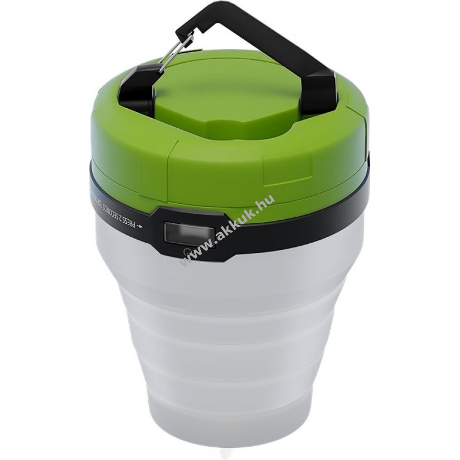 A robusztus műanyag házzal ellátott 3 az 1-ben összecsukható lámpa állólámpa, függőlámpa és zseblámpa egy praktikus termékben. Helytakarékos - összehajtva bármilyen hátizsákban vagy táskában elfér (58 mm magas, 90 mm kinyújtva). 4 világítási mód: 100 % fehér fény (90 lm, kb. 2,5 óra), 50 % fehér fény (45 lm, kb. 5 óra), gyertyafény és RGB fény (egyenként 2 lm, kb. 60 óra). Behúzható karabiner a felakasztáshoz és fluoreszkáló gumi az éjszakai fény funkcióhoz. Fröccsenésálló az IPX4 szabványnak megfelelően. ON/OFF kapcsoló 2 másodpercig történő megnyomása a lámpa be- és kikapcsolásához - megakadályozza a lámpa véletlen bekapcsolását Elemmel működik: 3db AAA elem (LR03, nem tartozék)