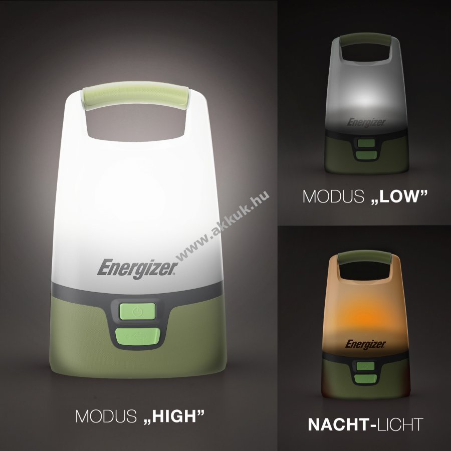 Az Energizer újratölthető lámpa fényes és erőteljes térvilágítást biztosít, amely tökéletes minden kültéri és kempingezési helyzethez. Az 1000 lumenes fényereje a hosszú üzemidővel és a töltőfunkciókkal együtt megbízható 360 fokos megvilágítást biztosít kalandokhoz, szabadtéri tevékenységekhez és vészhelyzetekhez.A mobiltelefonok és egyéb eszközök az USB-porton keresztül tölthetők. A stabil alap lehetővé teszi a kéz nélküli használatot, a kényelmes, csúszásmentes fogantyú pedig megkönnyíti a szállítást. Az Energizer újratölthető lámpa fényerejét a fényerőszabályzó funkcióval az Ön igényeihez igazíthatja, vagy használhatja az éjszakai fényt, amely halvány, visszafogott fényt ad.
