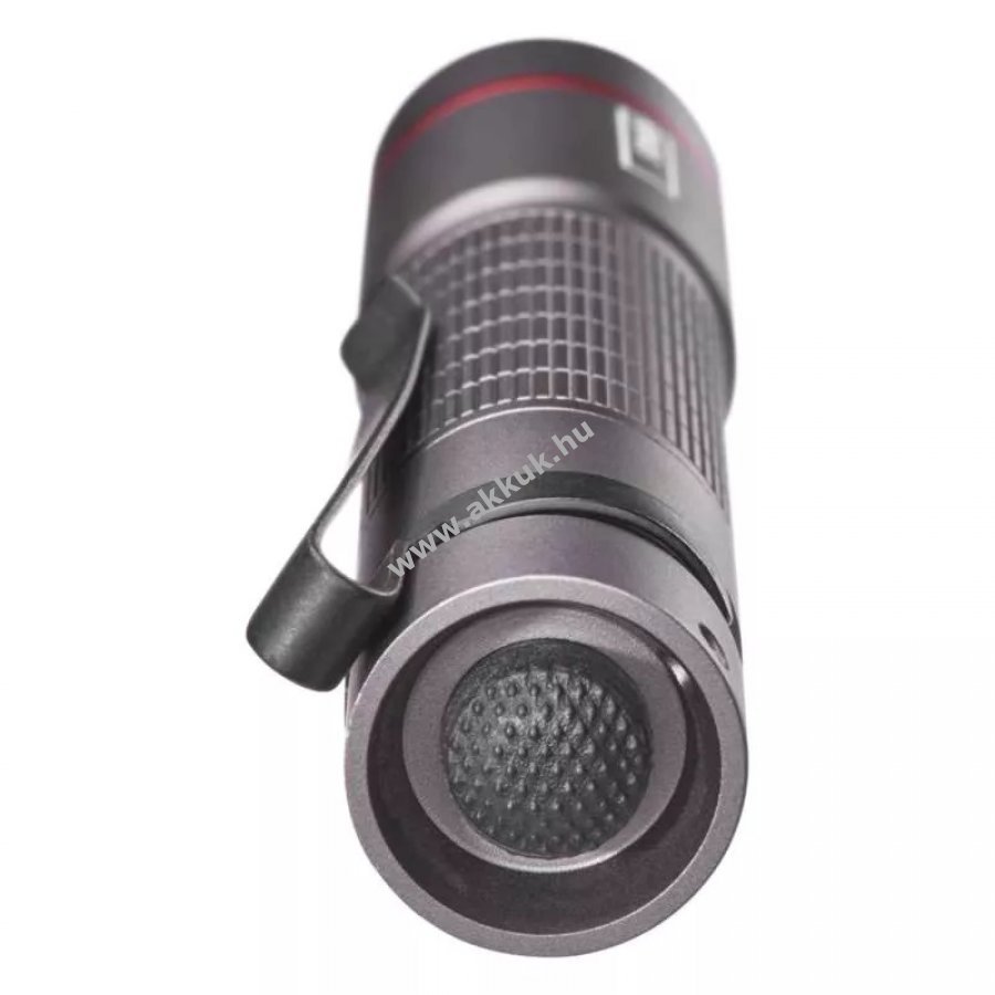 Kompakt, ellenálló és megbízható – ezek a tulajdonságok jellemzik az EMOS profi Ultibright sorozatába tartozó LED zseblámpákat. Az elegáns, piros gyűrűvel díszített dizájnos zseblámpák tartós fémből készülnek. Így megbízhatóan ellenállnak a rázkódásnak egy kemény felületre való leesésnél. Jó hír a magas szintű, IP65-ös védelem, melynek köszönhetően vízállóak. Kiváló minőségű, márkás CREE LED chip gondoskodik az átlag feletti fényáramról és hatótávolságról. Tökéletes segédként fogja Önt szolgálni munka közben, mikor teljes mértékben támaszkodik eszköze működőképességére. Az EMOS Ultibright zseblámpát ugyanakkor az otthoni hétköznapi tevékenységek, túrázás vagy utazás során is nagyra fogja értékelni. A praktikus csipesznek, megbízható pántnak és kompakt méreteinek köszönhetően mindig magával tudja vinni, ha szükséges. A táplálás1db AA elem (Nem tartozék).