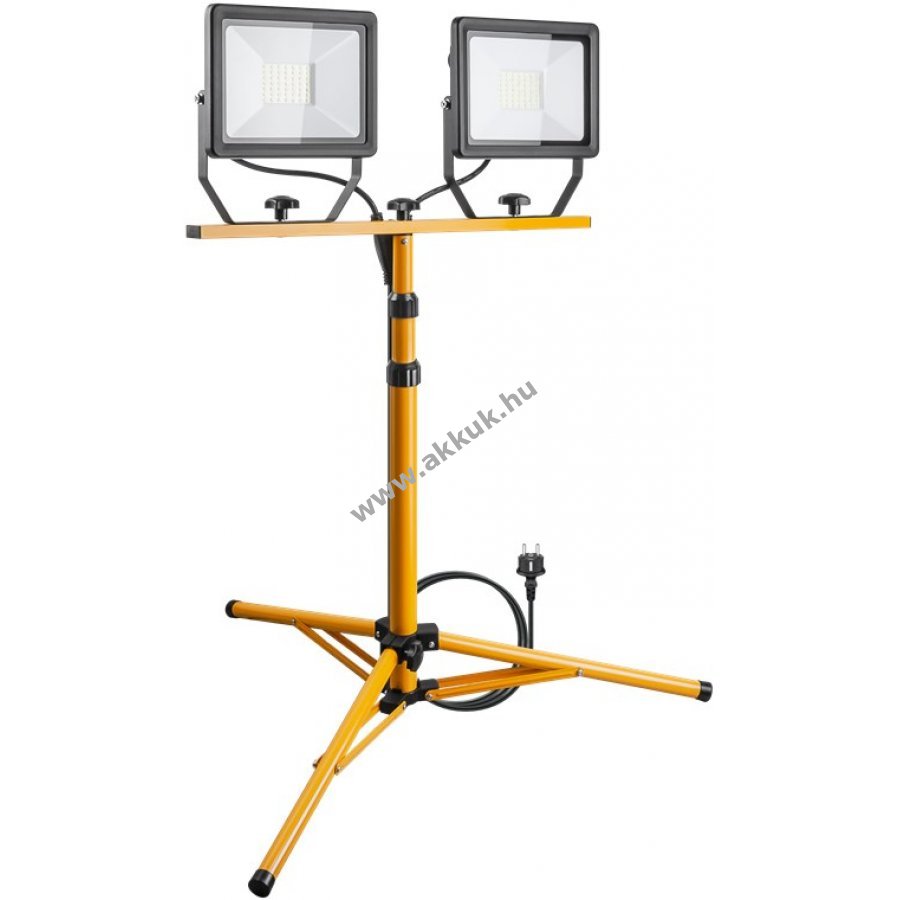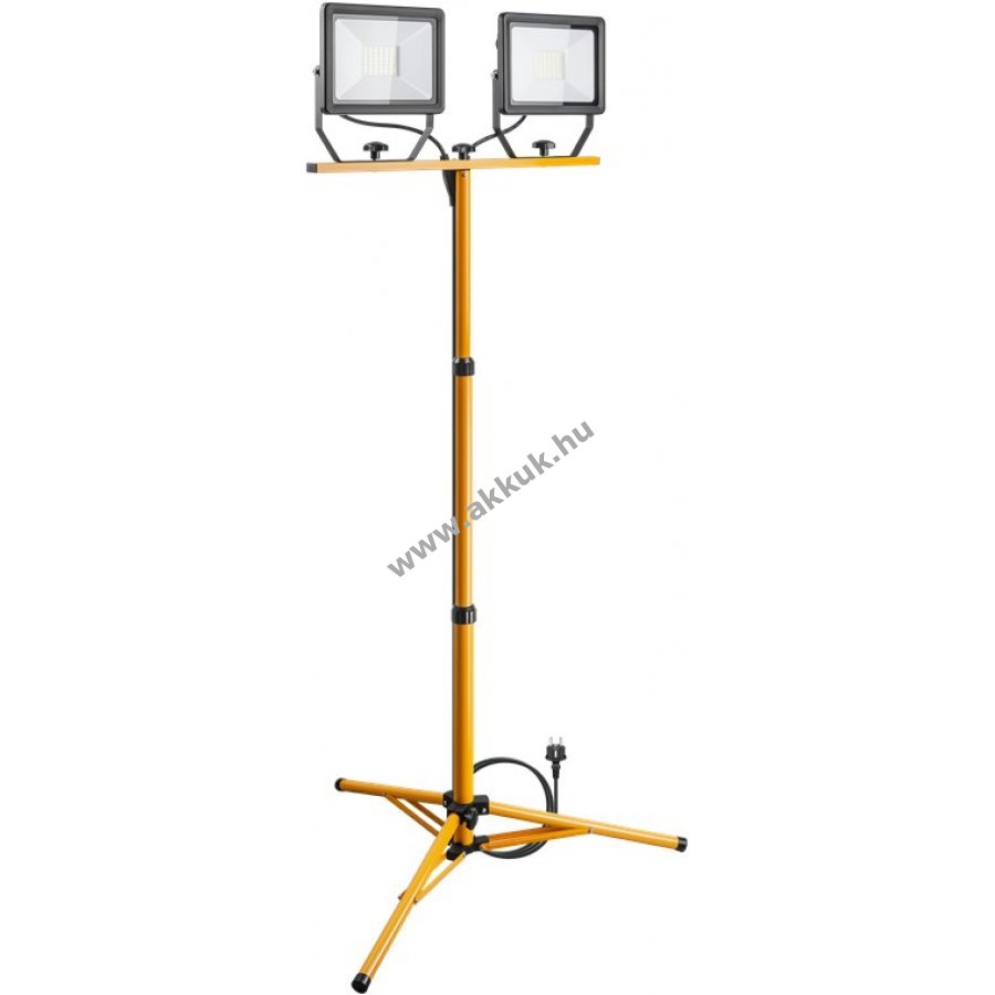 Nagyon fényes LED-es munkalámpa dupla fejjel és nagy felületű megvilágítással felújításhoz, műhelyhez, építkezéshez, garázshoz és pincéhez. Stabil, állítható magasságú fémállvánnyal ellátott építési lámpa (87-163 cm), összecsukható a könnyű tárolás érdekében LED-es reflektor kiváló minőségű és ütésálló öntött alumínium házzal, átlátszó és edzett üveggel, különösen alkalmas építkezésekhez A LED-es munkalámpa akár 80 %-kal csökkenti az energiafogyasztást a halogén reflektorokhoz képest. Fényszóró biztonsági dugóval és robusztus 2,5 m-es kábellel. méretek: 88 x 88 x 163 cm, lámpamagasság max. 163 cm