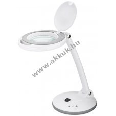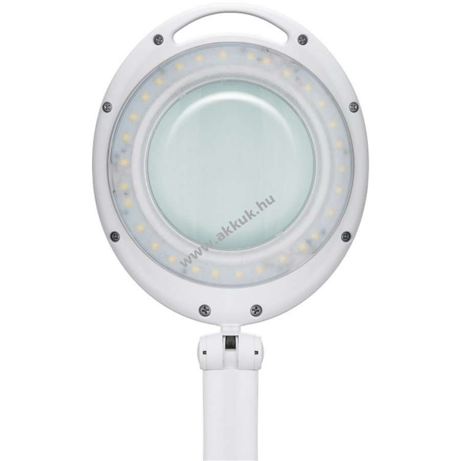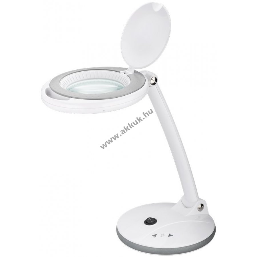 A fényerő az érintőképernyőn keresztül állítható, 80 lm-től 450 lm-ig 5 fokozatban A lámpával és állvánnyal ellátott nagyító (100 mm lencseátmérő) árnyékmentes, LED-es gyűrűs megvilágítást hoz létre. A gyorskioldónak köszönhetően egyszerűen és szerszámmentesen kicserélheti a 3 dioptriás, 1,75x-es nagyítású szabványos üveglencsét (védősapkával együtt). A nagyító lámpa csuklós karja beépített kábelvezetéssel rugalmas 300 mm-es munkasugarat biztosít. A lencsefej dönthető és 75 fok-ban elforgatható, a csúszásmentes asztali állvány stabil tartást biztosít. Ideálisan alkalmas asztali nagyítónak, kézműves lámpának, asztali, rajzoló- vagy olvasólámpának is
