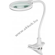 30db SMD LED-je semleges színekben jeleníti meg a tárgyakat. A nagyító lámpa 100 mm átmérőjű lencséje kiváló minőségű üvegből készült, 3 dioptriával és 1,75-szörös nagyítással. A gyorskioldónak köszönhetően a nagyító lámpa lencséje könnyen és szerszámmentesen cserélhető. Rugalmas lengőnyak a nagyítós lámpa egyéni beállításához Ideálisan alkalmas asztali nagyítónak, kézműves lámpának, íróasztal-, rajz- vagy olvasólámpának. A bilincs puha párnázottságának köszönhetően a lámpával ellátott nagyító lámpát biztonságosan és a felület sérülése nélkül csíptetheti fel.
