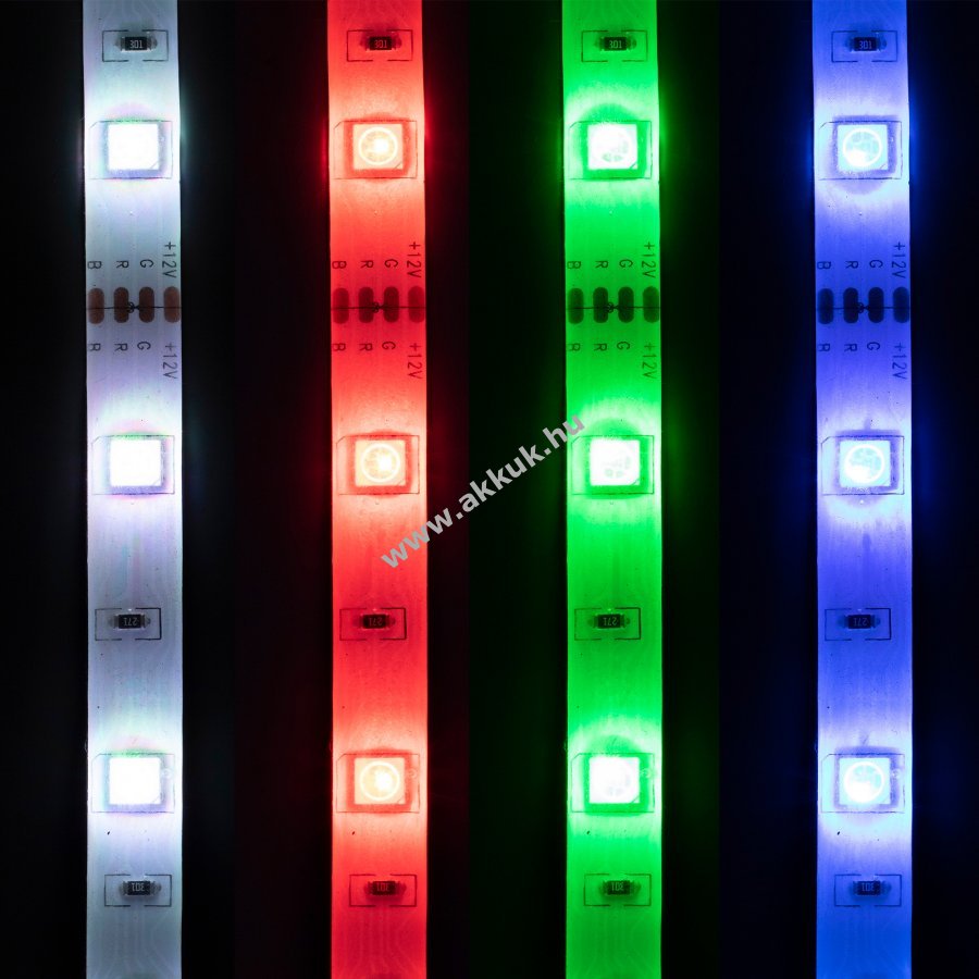 többféle kapcsolható világítási effekt állítható fényerő zene ütemére villogó fényeffekt, beépített kondenzátor mikrofon vezérléssel hálózati adapter 5m/150 LED