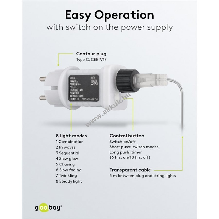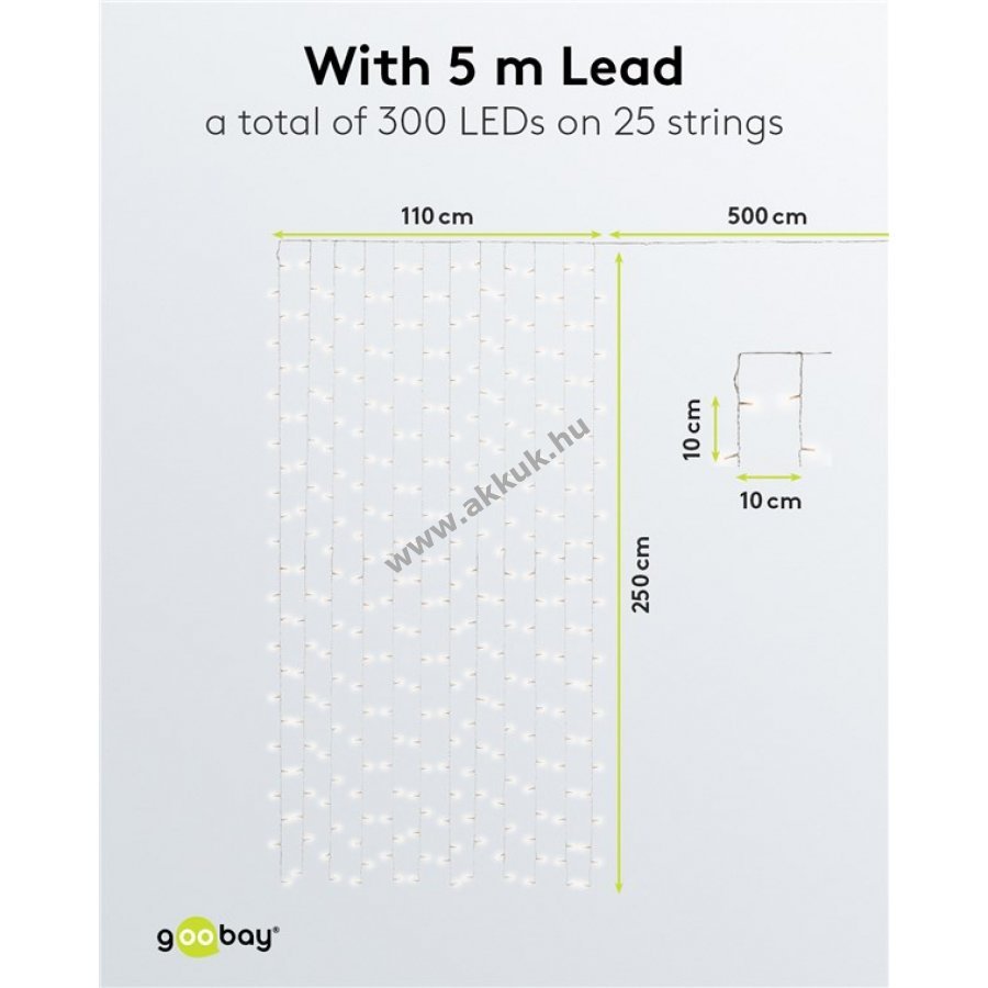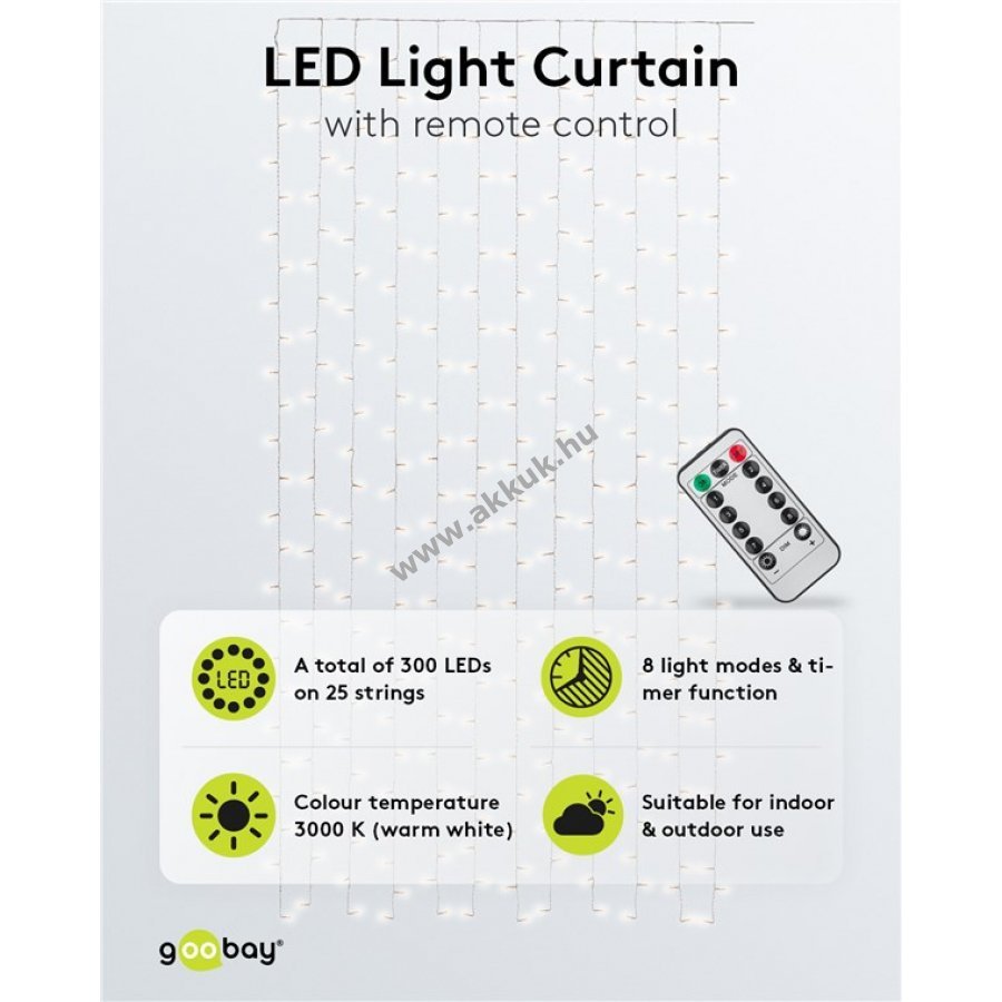 Goobay 300 LED fényfüggöny távirányítóval időzítővel és fényerőszabályzóval 31V kültéri trafóval