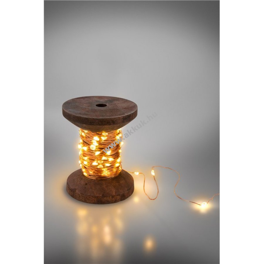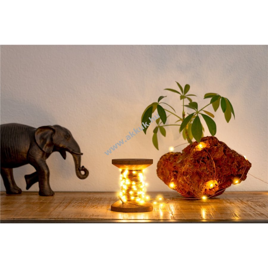 A meleg fehér mikro LED-ek hangulatos légkört teremtenek, akár egyetlen fényforrásként az orsón, akár fényfüzérként díszítve. A fényfüzér minden évszakban használhatóa tekercses talp szilárd állást biztosít, még akkor is, ha a drótot kitekerik. Az IP22 védettségi osztálynak köszönhetően beltéri használatra engedélyezett 3 m-es USB-kábel, be-/kikapcsoló, áramellátás pl. USB-A csatlakozóaljzaton vagy power bankon keresztül. méretek: 9.5cm x 7,5cm-es orsó, 10 m hosszú drótlánc, 10 cm távolság a LED-ek között, anyagok: valódi fa, rézhuzal.