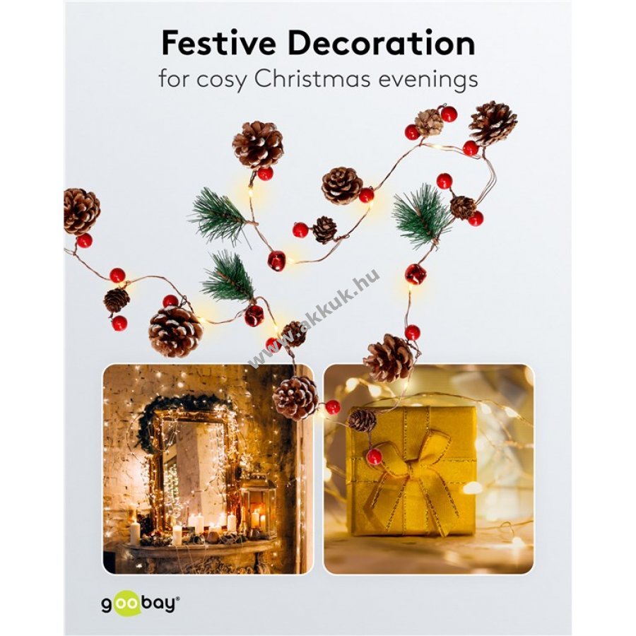 Az elemes működés miatt ideális karácsonyi díszítéshez éttermekben bárokban és kirakatokban.