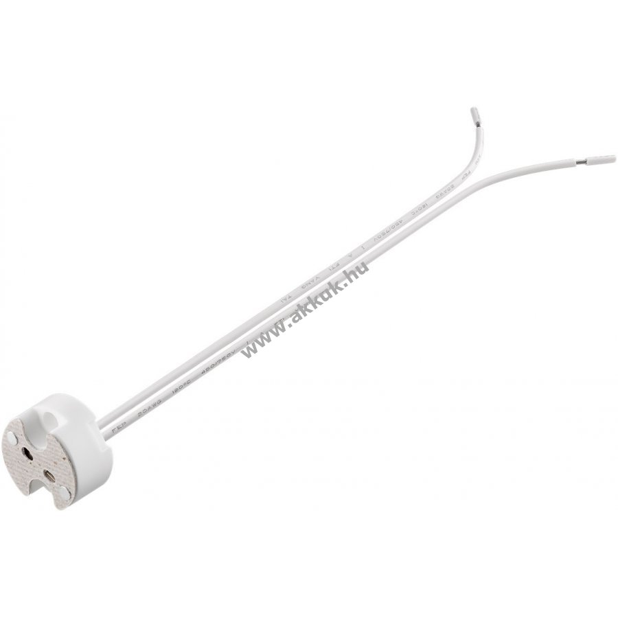A GX5.3 lámpatartó alkalmas pótalkatrészként vagy a lámpa gyors és könnyed beszereléséhez. Lámpafoglalat előszerelt kábelekkel, szabad, 0,5 - 0,75 mm2-es, krimpelt kábelvégekkel. Kiváló minőségű kerámia ház csillámborítással (részben burkolt) Névleges hőmérséklet T 250 °C A csavaros rögzítésű izzófoglalat LED-lámpákhoz alkalmas. Megjegyzés: Az izzófoglalat G4 és GY6,35 foglalatú lámpákhoz is illeszkedik.