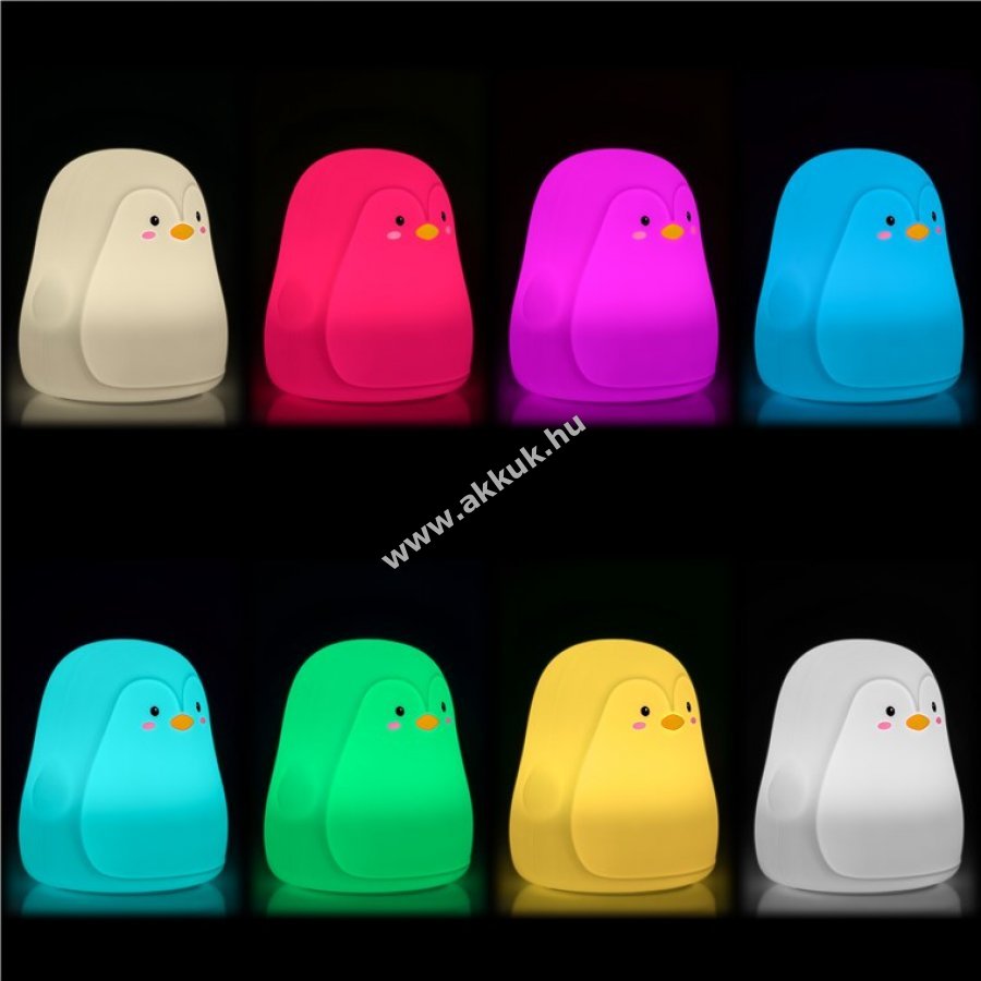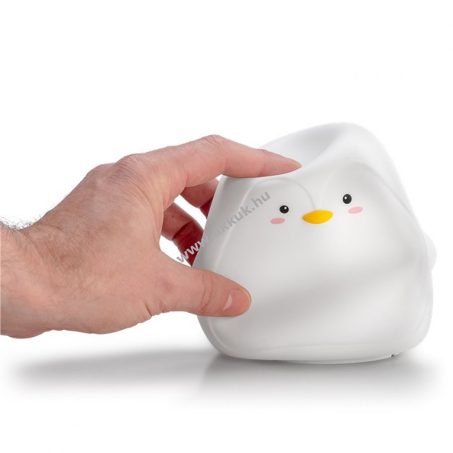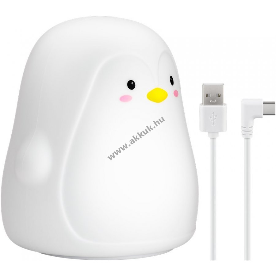 A színes, hordozható éjszakai fény gyerekeknek (BPA-mentes) ideális társ az éjszakában, és bárhová magával viheti kirándulásra. A pingvin tökéletes alvássegítő vagy baba éjszakai fényként, valamint éjjeliszekrény vagy gyerekszoba dekorációjaként is. A lágy LED-fény harmonikus hangulatot teremt az otthonban, pl. a hálószobában vagy a babaszobában. 3 fénymód: 1. meleg fehér fény, 2. lágy színváltás 7 árnyalat között, 3. kiválasztott RGB szín állandóan aktiválva. Érintse meg a rugalmas szilikon éjjeli lámpát az egyes fénymódok közötti váltáshoz érintésvezérléssel. Vezeték nélküli működés az újratölthető akkumulátornak és a beépített USB-C portnak köszönhetően (80 cm-es USB-C-USB-A töltőkábel tartozék), 5 V, 1 A töltés. LED-lámpa üzemideje: RGB fény 9 óra, meleg fehér fény 10 óra, töltési idő: 3-4 óra.