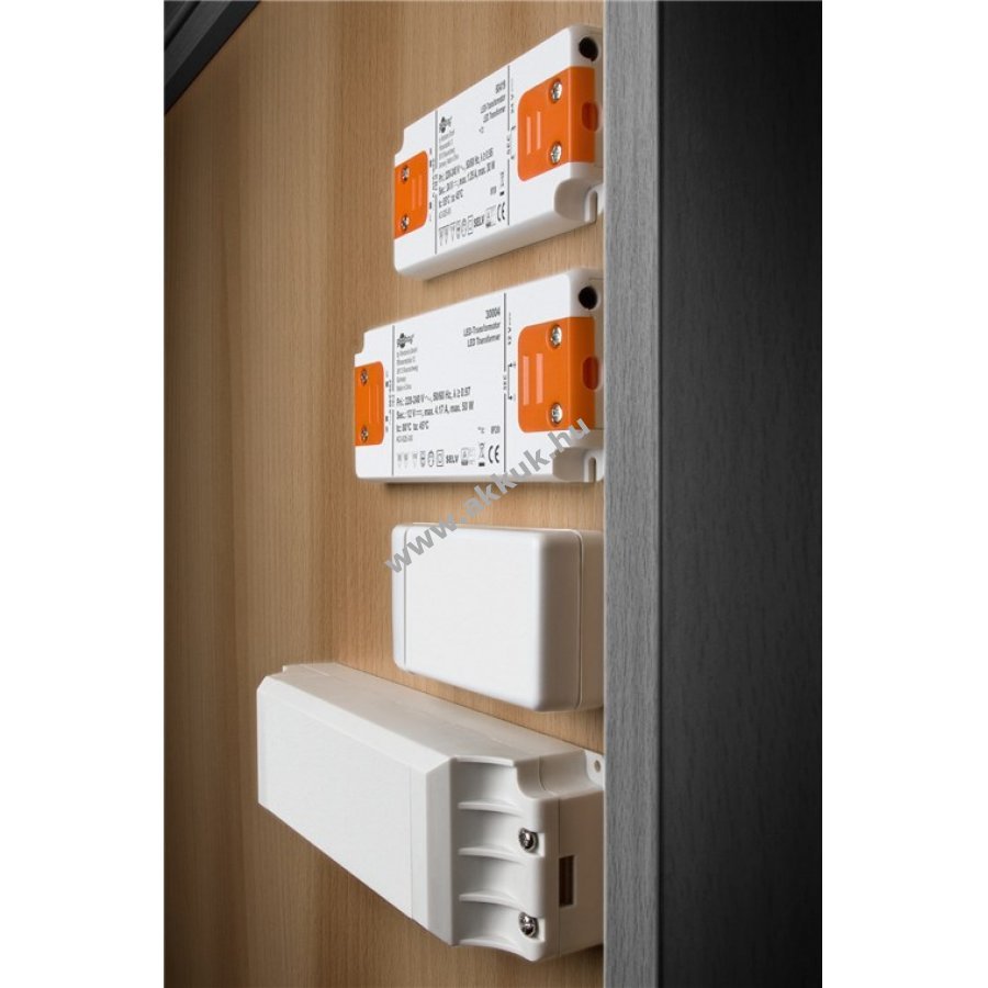 A trafó állandó 12 V egyenfeszültséget biztosít LED-ekhez akár 30 W teljesítményig. Különböző hosszúságú LED-szalagok és modulok rugalmas csatlakoztatását teszi lehetővé párhuzamos kapcsolásban. Kompakt méretű, nincs minimális terhelés, így LED-szalagok és modulok egyszerű hálózati csatlakoztatására alkalmas 200-240 V AC feszültségről.