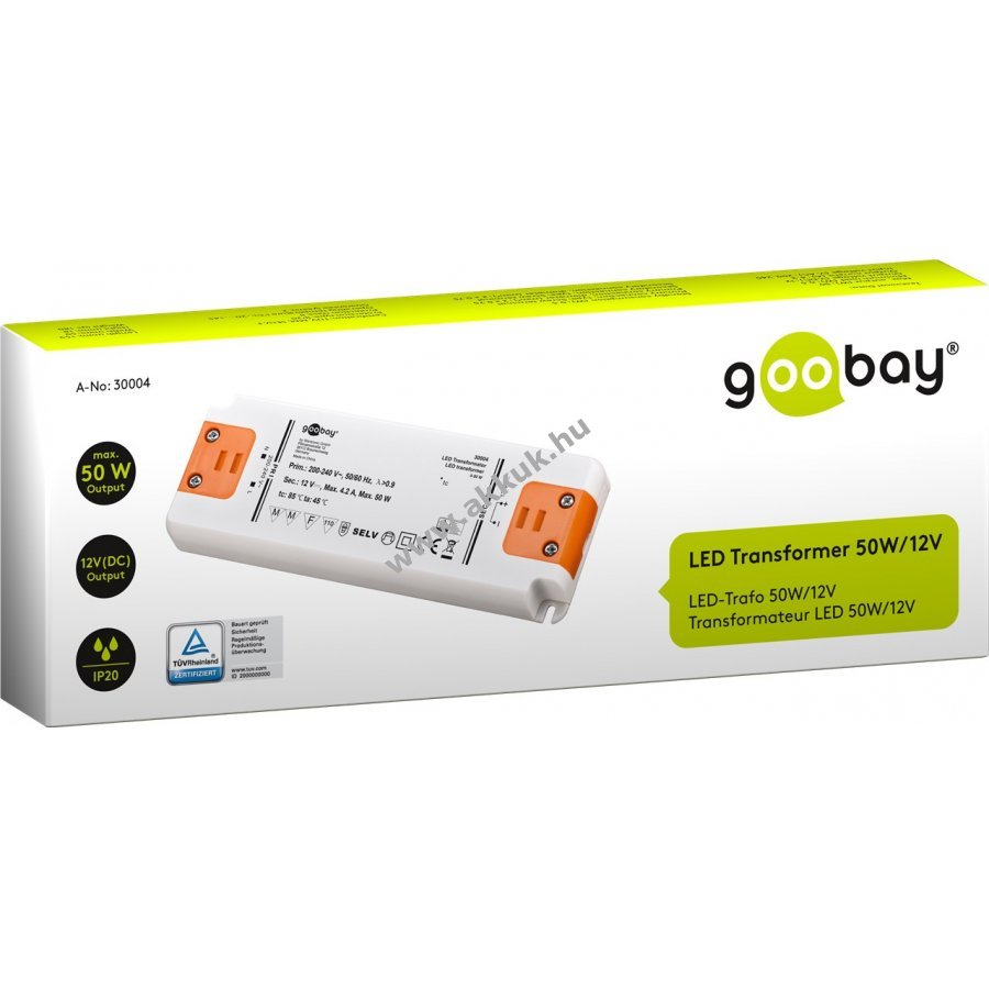 12V 185mm x 64mm x 22mm Goobay 1 év jótállás (további részletek) 4040849300042