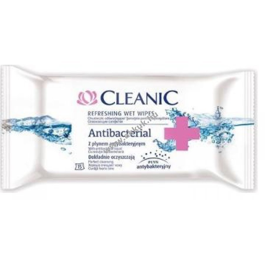 Cleanic Antibacterial nedvesített frissítő törlőkendő a kézhez és testhez antibakteriális folyadékkal. Bőrgyógyászatilag tesztelt. A bőr számára semleges pH értékkel. Ne használja szemre vagy nyálkahártyákra.