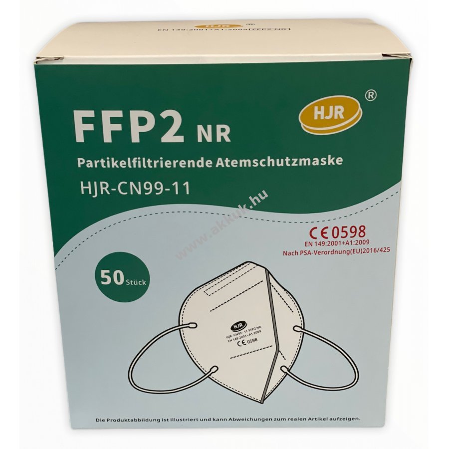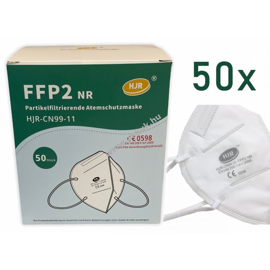 HJR FFP2 NR részecskeszűrő félálarc EN149: 2001 + A1: 2009 - 50db (nem orvosi!), Zsugorfóliába csomagolva