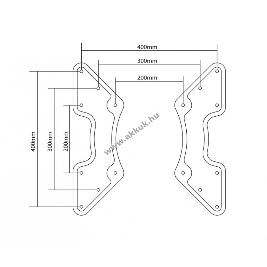 Ez a VESA adapter lehetővé teszi, hogy a fali tartó 200 mm x 200 mm-es furattávolságát 400 mm x 400 mm-re növelje. A VESA adapter a TV és a fali tartó közötti furattávolságot igazítja. Az adapter a VESA furattávolságot 200 mm x 200 mm-ről 400 mm x 400 mm-re bővíti. A maximális terhelés az adott fali tartótól függ. Az adapter kiváló minőségű porszórt fémből készül. A rögzítőanyagot (csavarok, anyák stb.) a csomag tartalmazza.